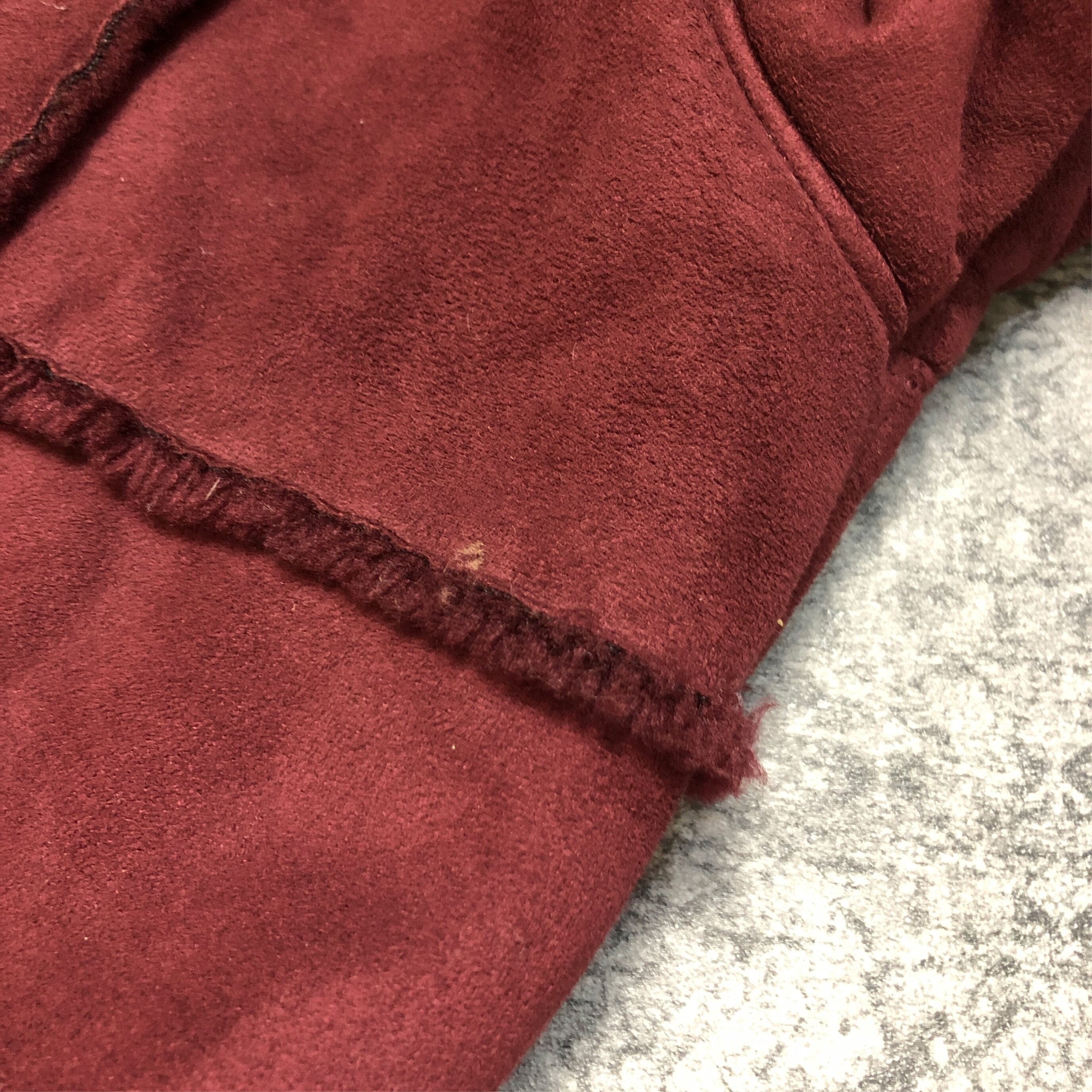 珍しいワインレッドのムートンコートは冬のコーディネートによく映えます◎