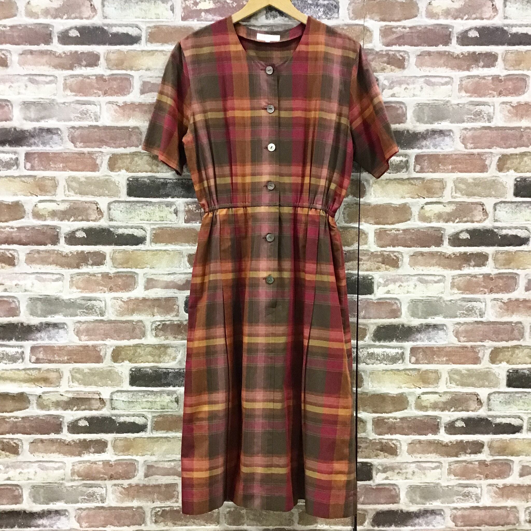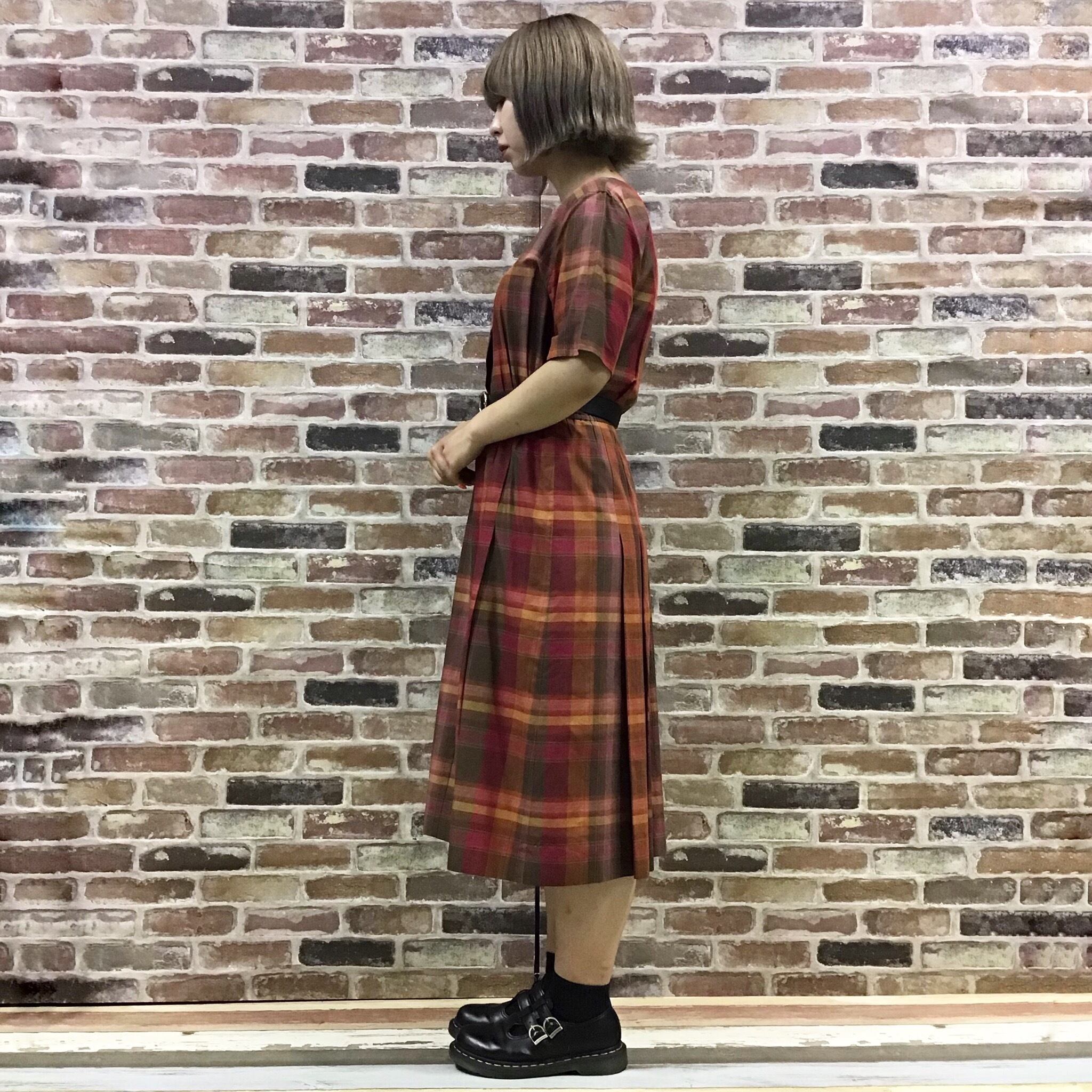 #レディース#古着#古着屋#インポート古着#インポート#ジョージアンドキューピー#ジョージ&キューピー#ヴィンテージ#vintage #半袖ワンピース #チェック柄 #バーバリー #茶色