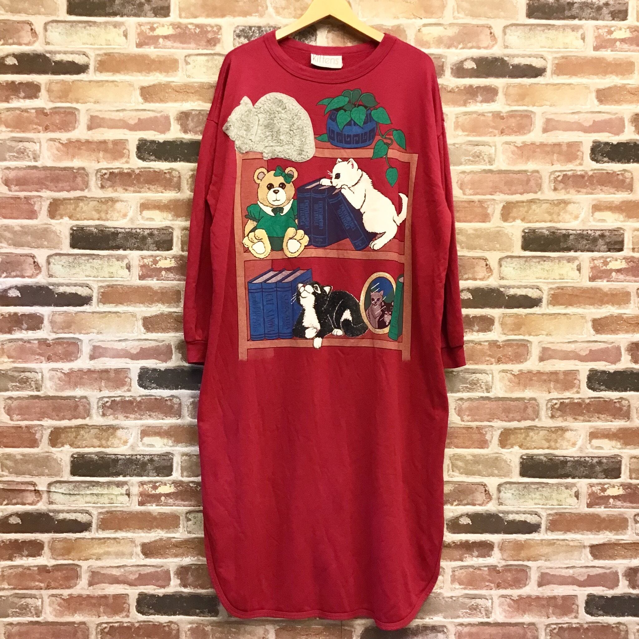 #レディース#古着#古着屋#インポート古着#インポート#ジョージアンドキューピー#ジョージ&キューピー#ヴィンテージ#vintage #スウェットワンピース #長袖 #猫 #ネコ #動物柄