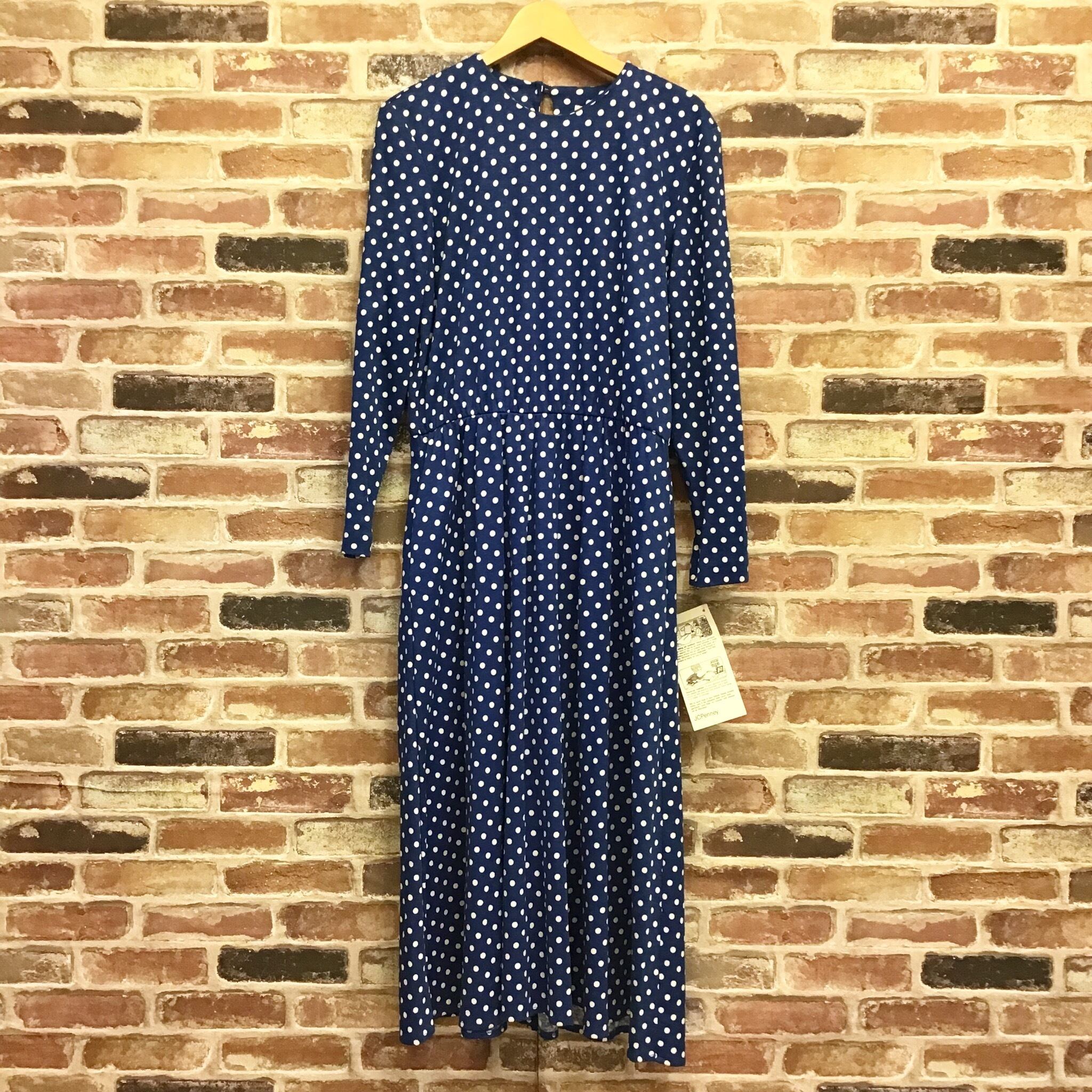 #レディース#古着#古着屋#インポート古着#インポート#ジョージアンドキューピー#ジョージ&キューピー#ヴィンテージ#vintage #長袖 #ドット柄 #ワンピース #フレアスカート #ロング丈 #紺色 #青色