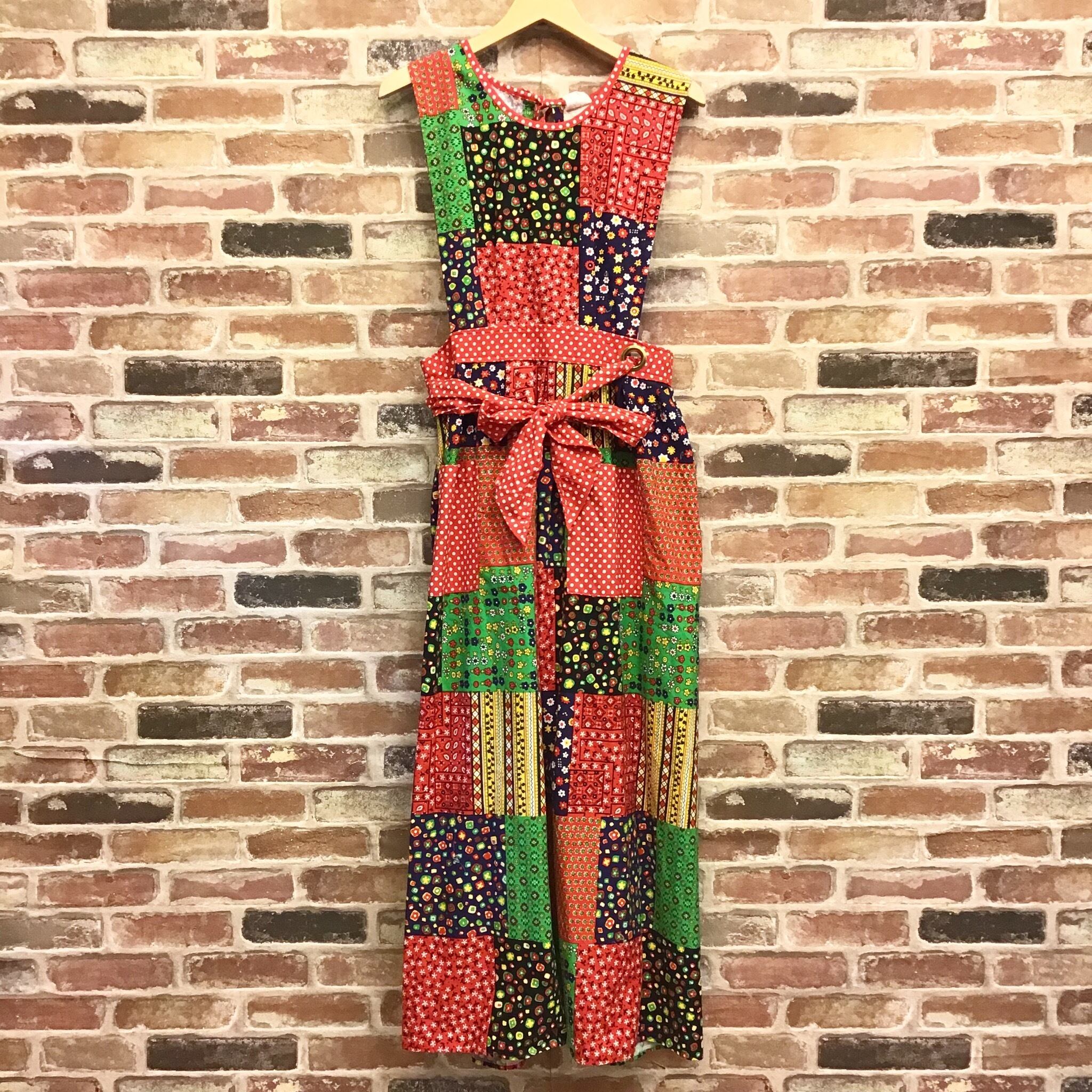 #レディース#古着#古着屋#インポート古着#インポート#ジョージアンドキューピー#ジョージ&キューピー#ヴィンテージ#vintage #ノースリーブワンピース #エプロン #ロング丈 #マキシ丈 #カラフル #赤色