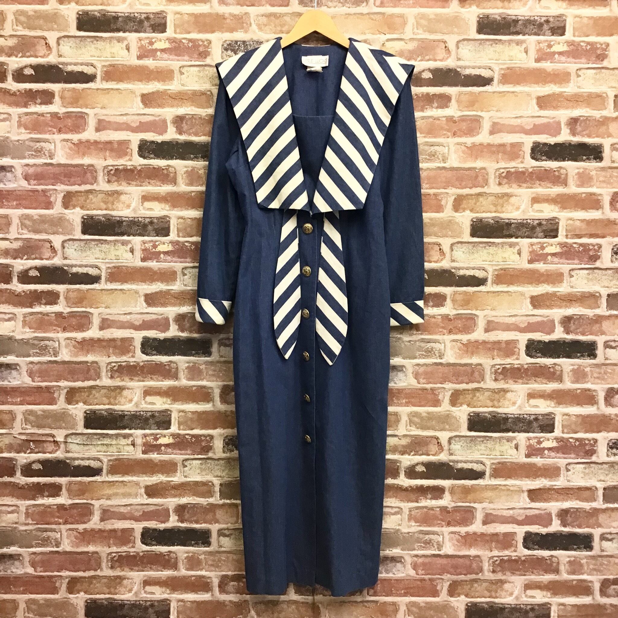 #レディース#古着#古着屋#インポート古着#インポート#ジョージアンドキューピー#ジョージ&キューピー#ヴィンテージ#vintage #長袖 #デニムワンピース #襟付き #ロング丈 #マキシ丈 #レトロ #ゆったり #青色