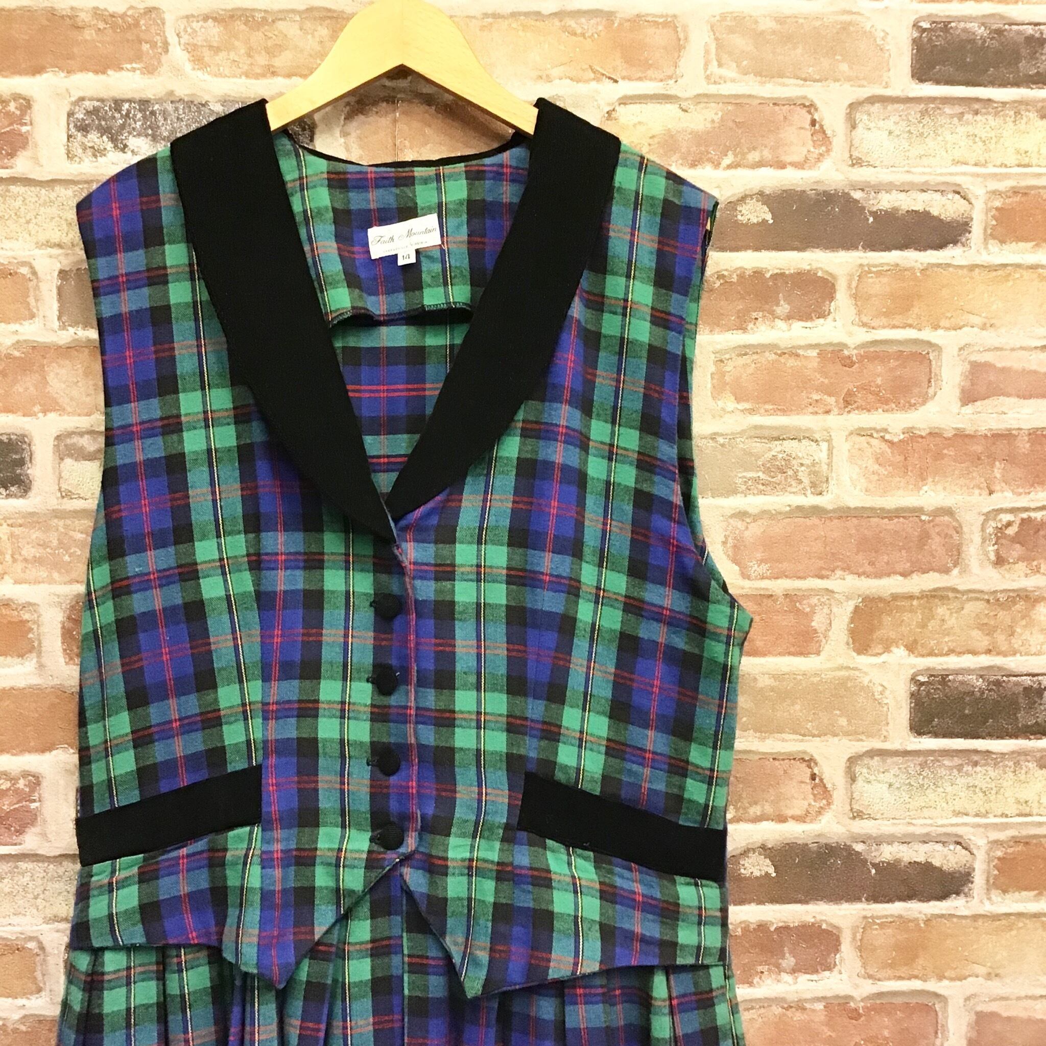 #レディース#古着#古着屋#インポート古着#インポート#ジョージアンドキューピー#ジョージ&キューピー#ヴィンテージ#vintage #レトロ #ロング丈 #マキシ丈 #ゆったり #長袖ワンピース #チェック柄 #緑色 #青色