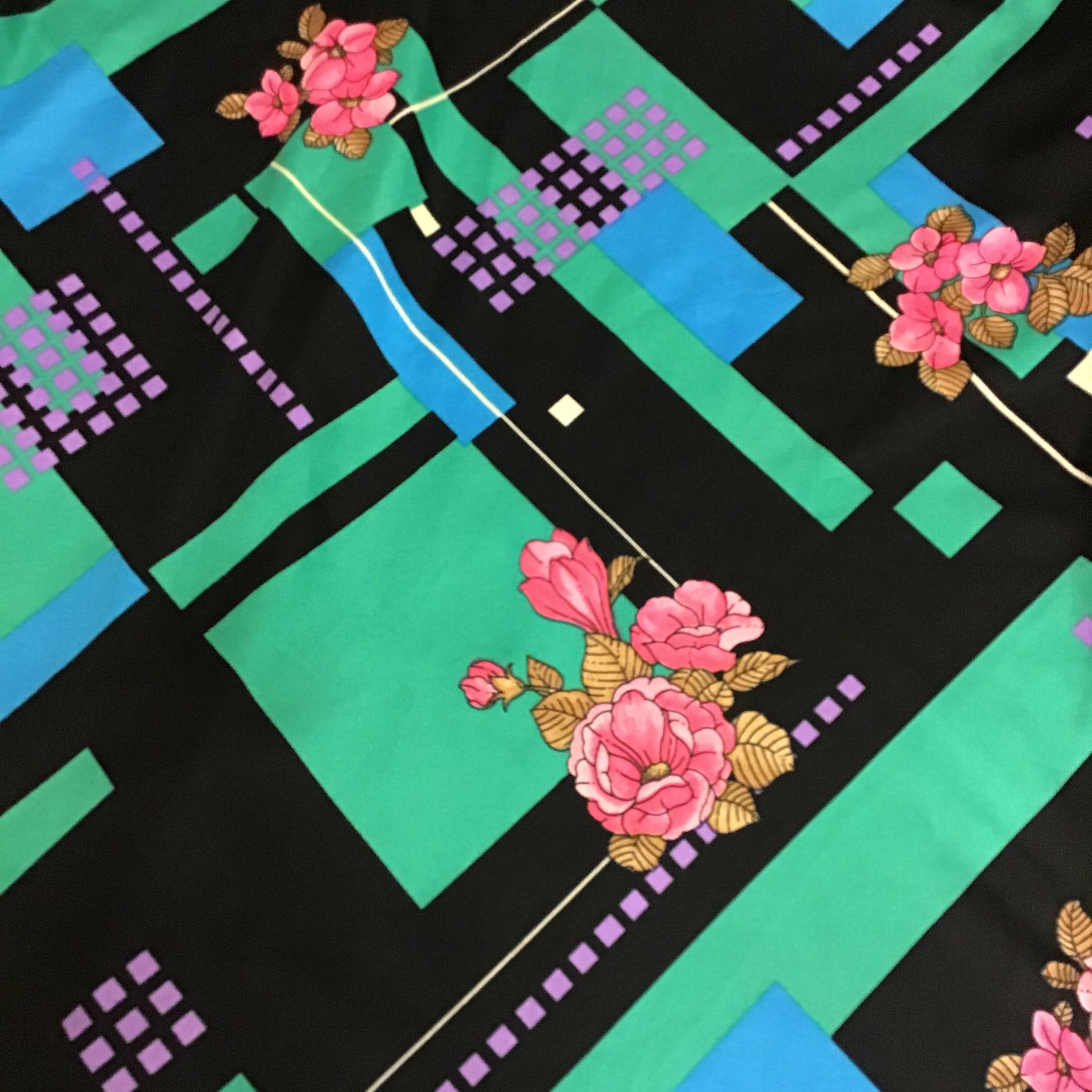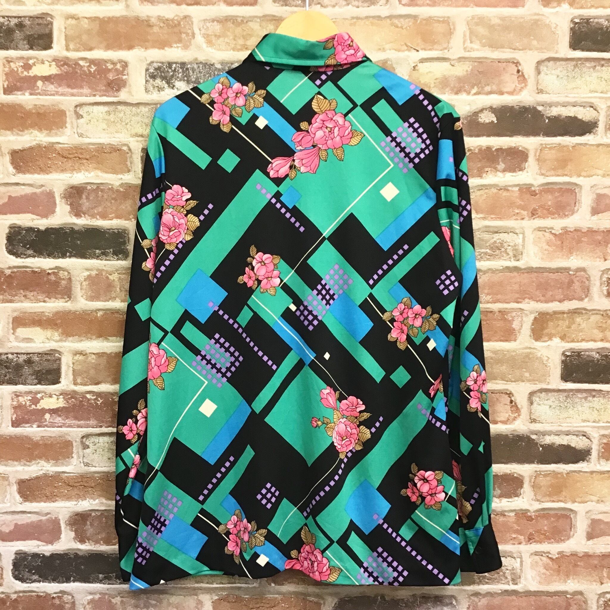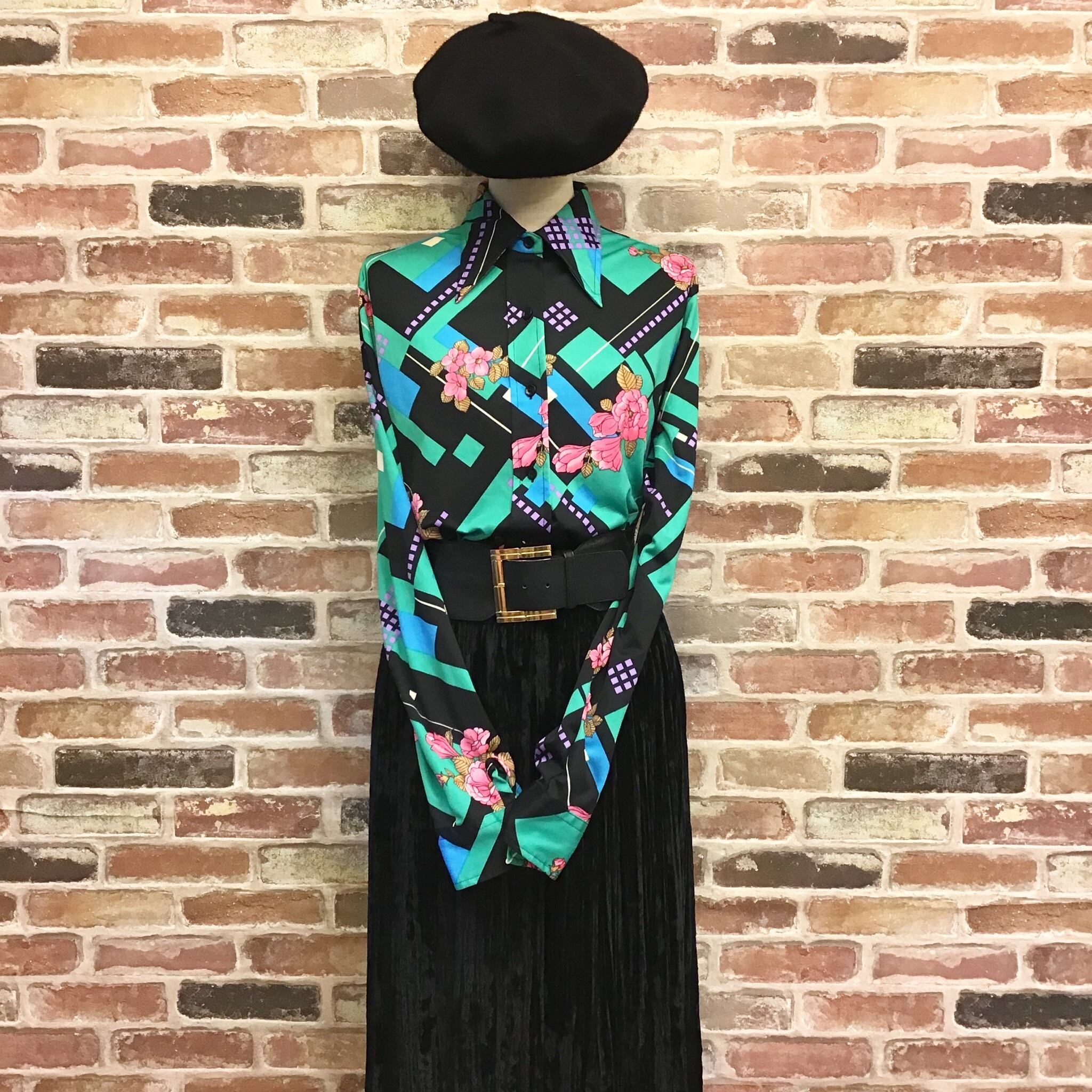 #レディース#古着#古着屋#インポート古着#インポート#ジョージアンドキューピー#ジョージ&キューピー#ヴィンテージ#vintage #長袖シャツ #レトロ #ブラウス #総柄 #花柄 #襟付き #ゆったり #緑色 #黒色