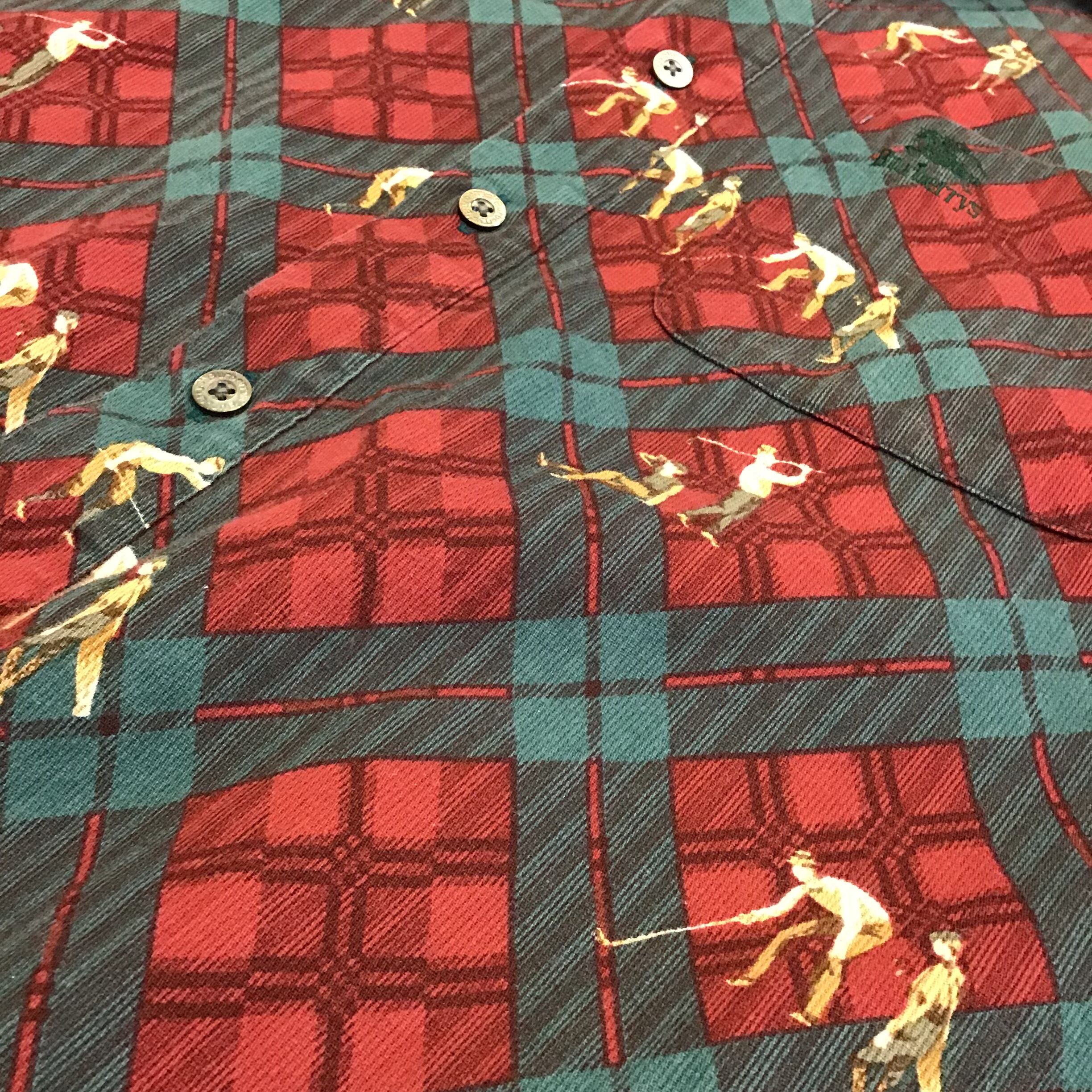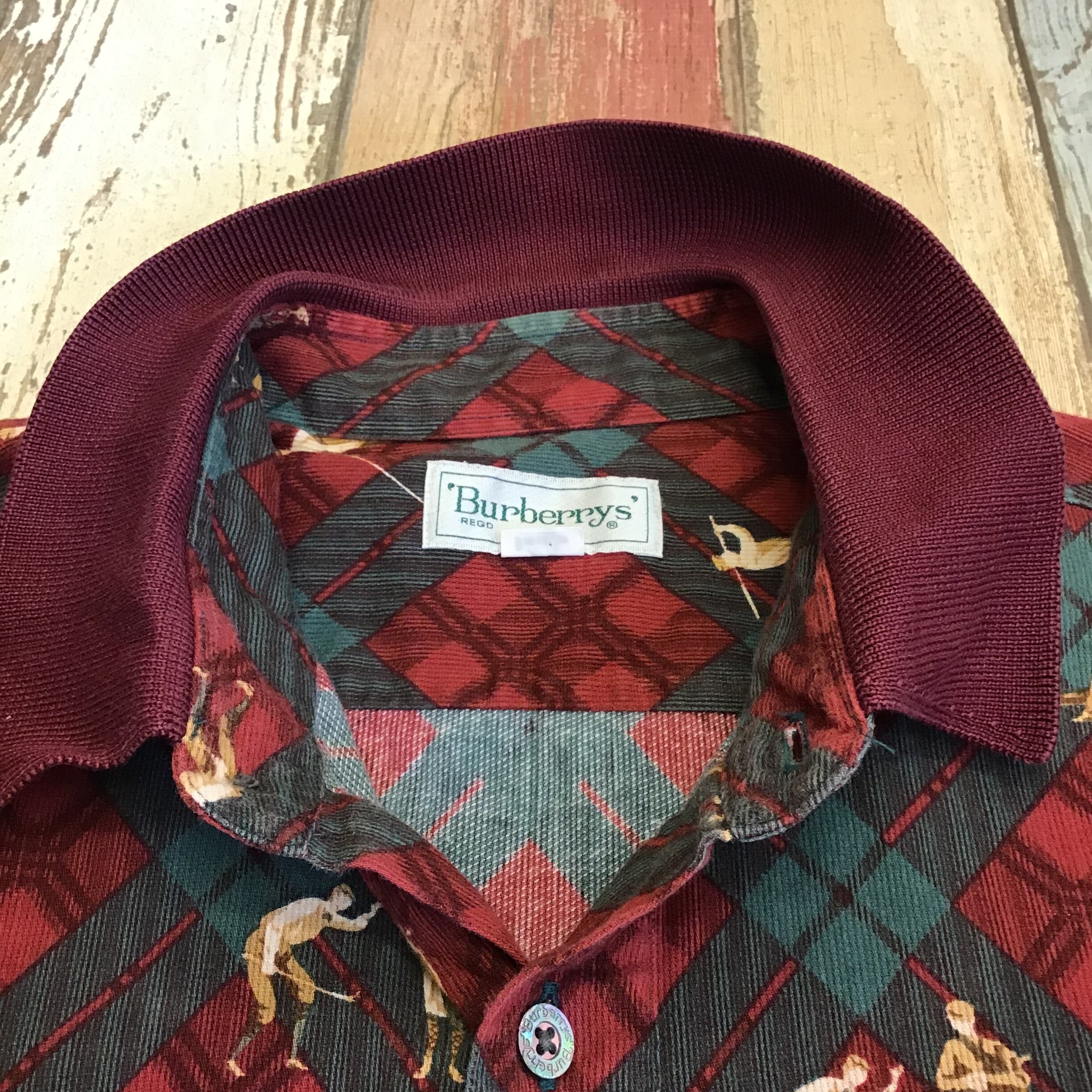 #レディース #メンズ#古着#古着屋#インポート古着#インポート#ジョージアンドキューピー#ジョージ&キューピー#ヴィンテージ#vintage #長袖シャツ #総柄シャツ #パターンシャツ #バーバリー #ブランドシャツ #イラスト #緑色 #エンジ色