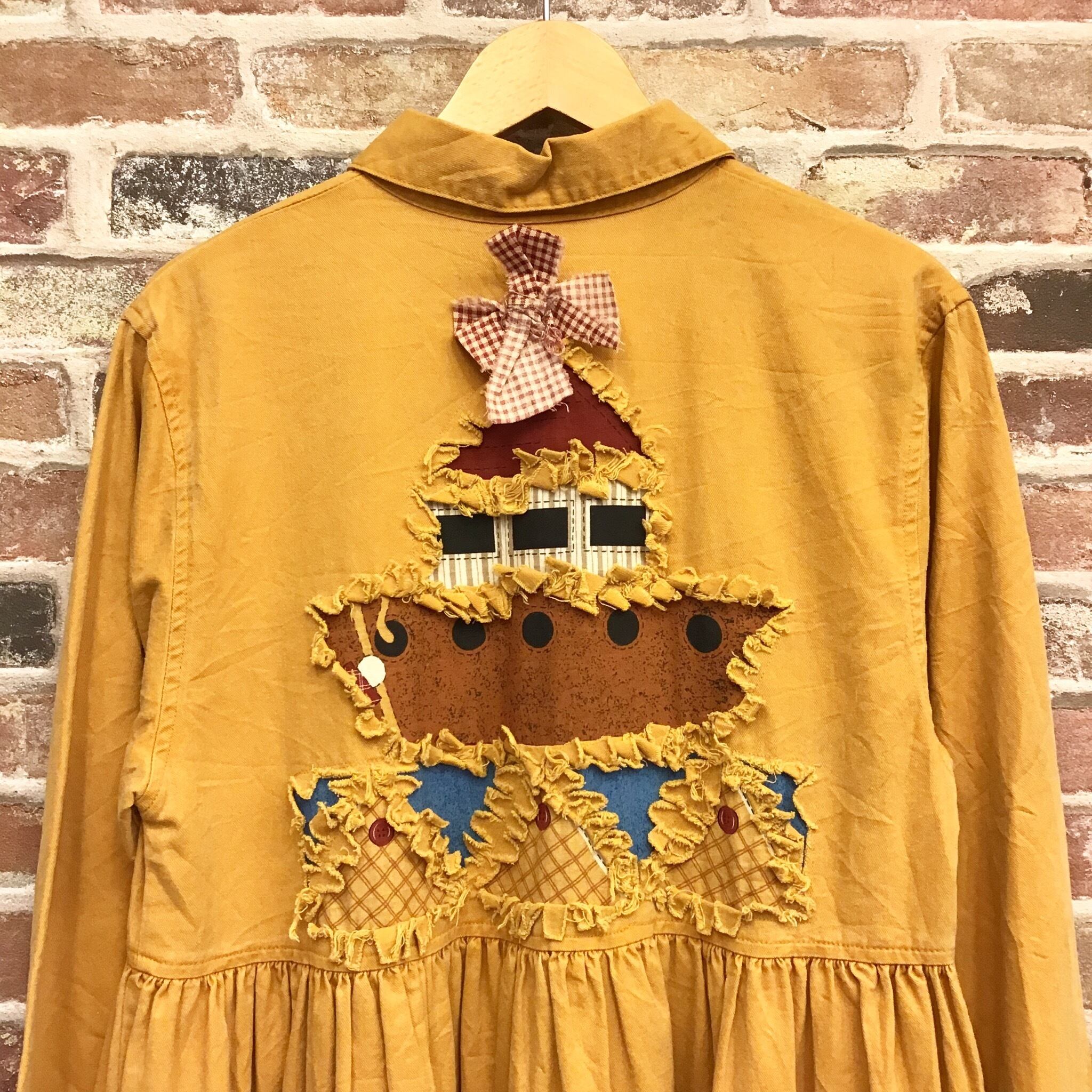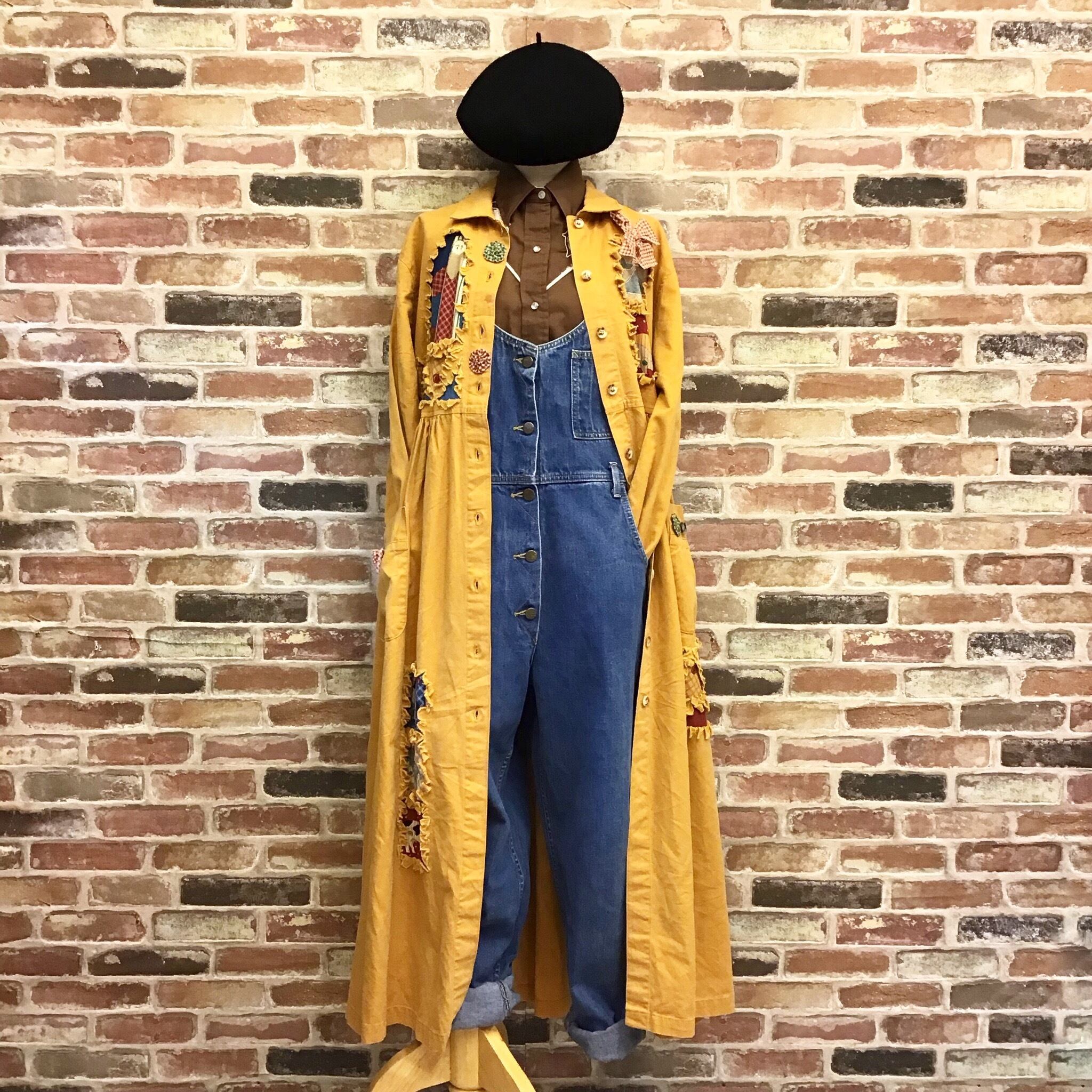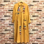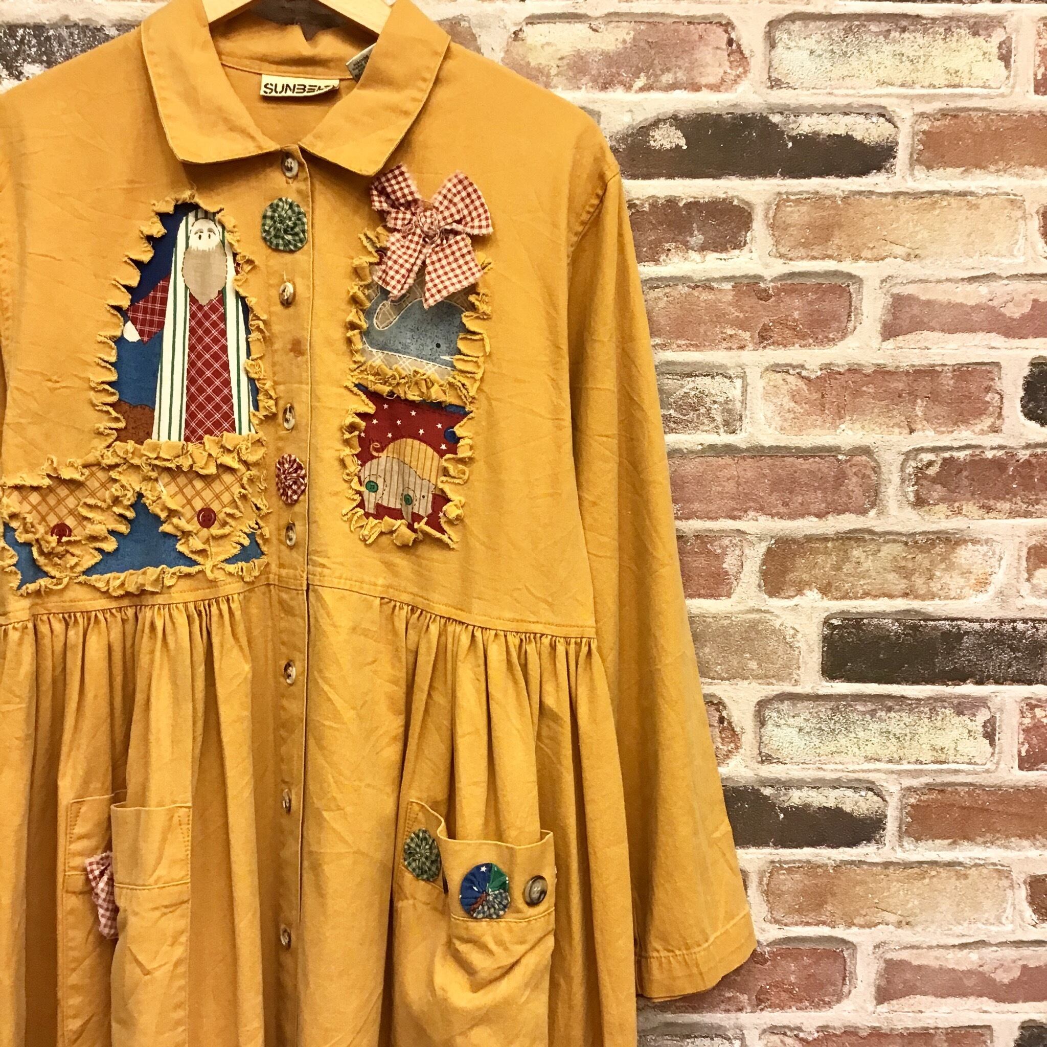 #レディース#古着#古着屋#インポート古着#インポート#ジョージアンドキューピー#ジョージ&キューピー#ヴィンテージ#vintage #長袖 #襟付き #前開き #レトロ #アメリカ古着 #ロング丈マキシ丈 #ロングワンピース #ゆったり #大きいサイズ #ワッペン #黄色