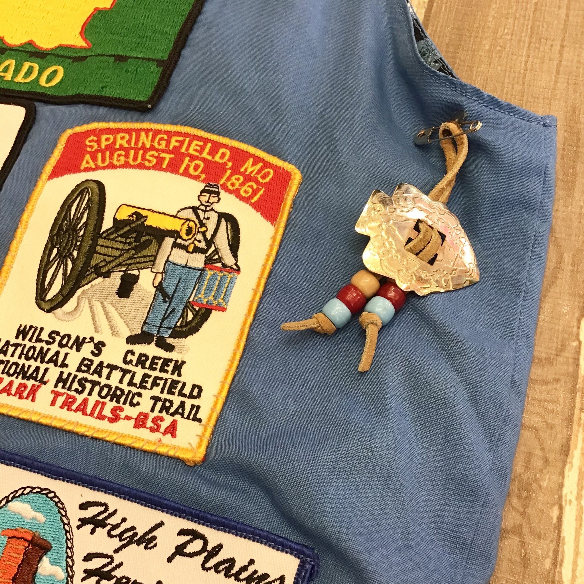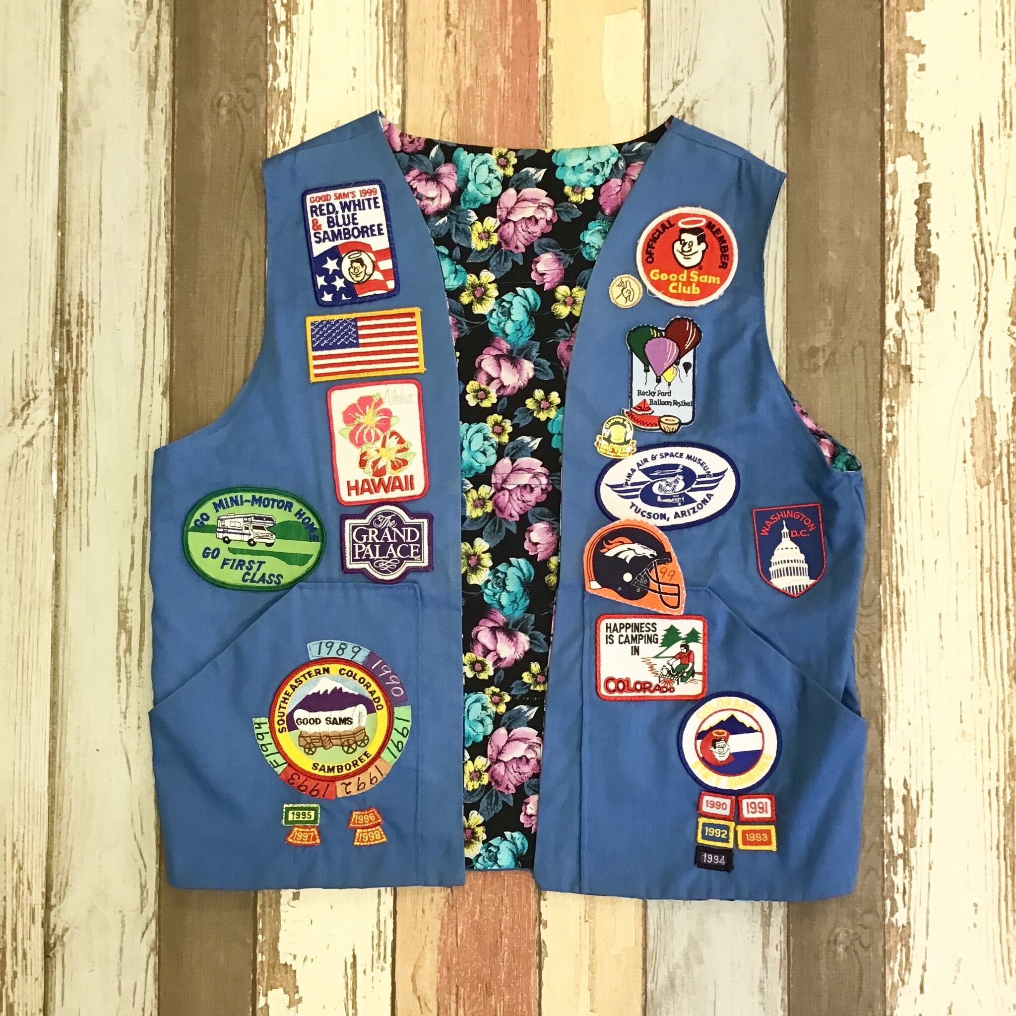 ワッペンやバッヂがたくさん付いた個性的なベストです♪