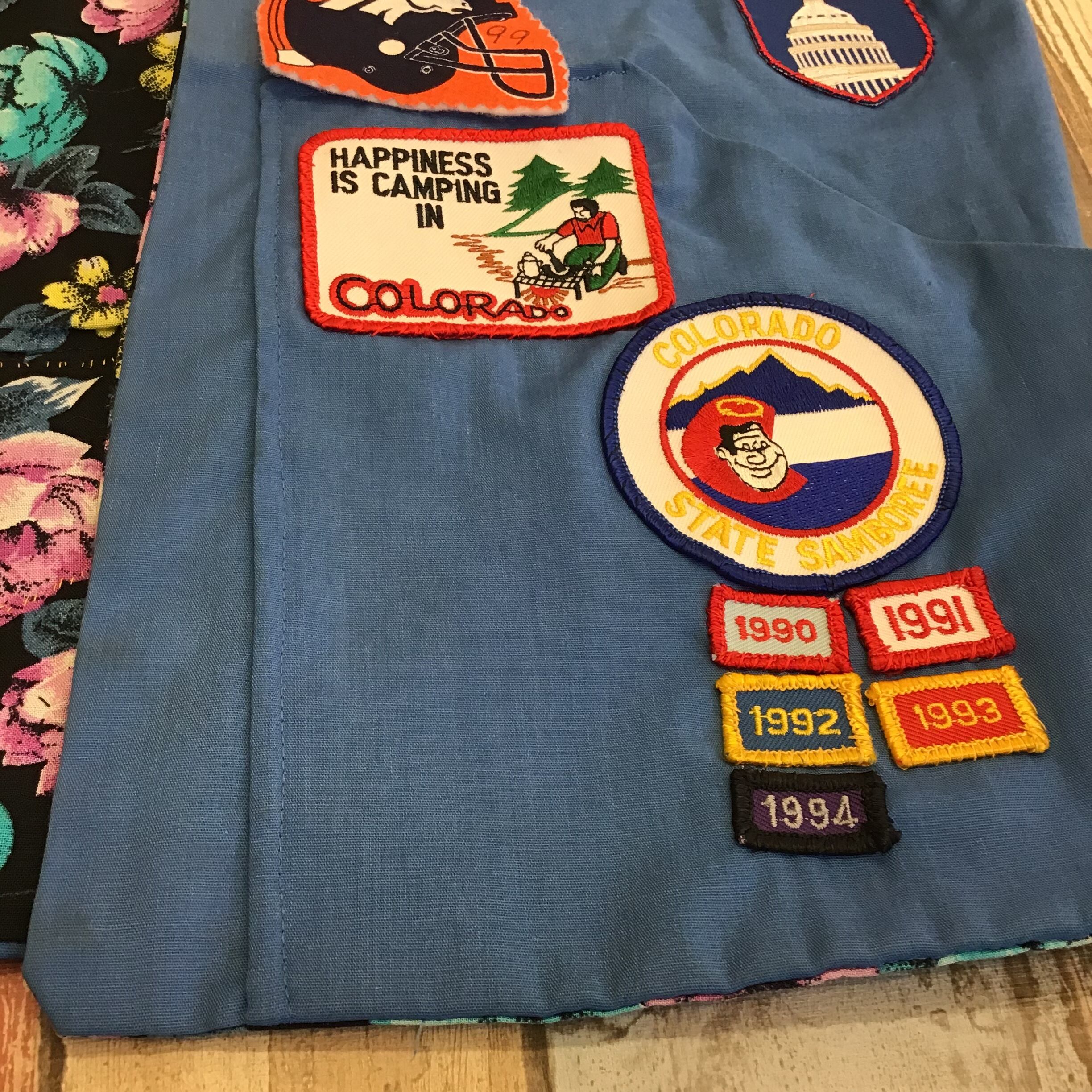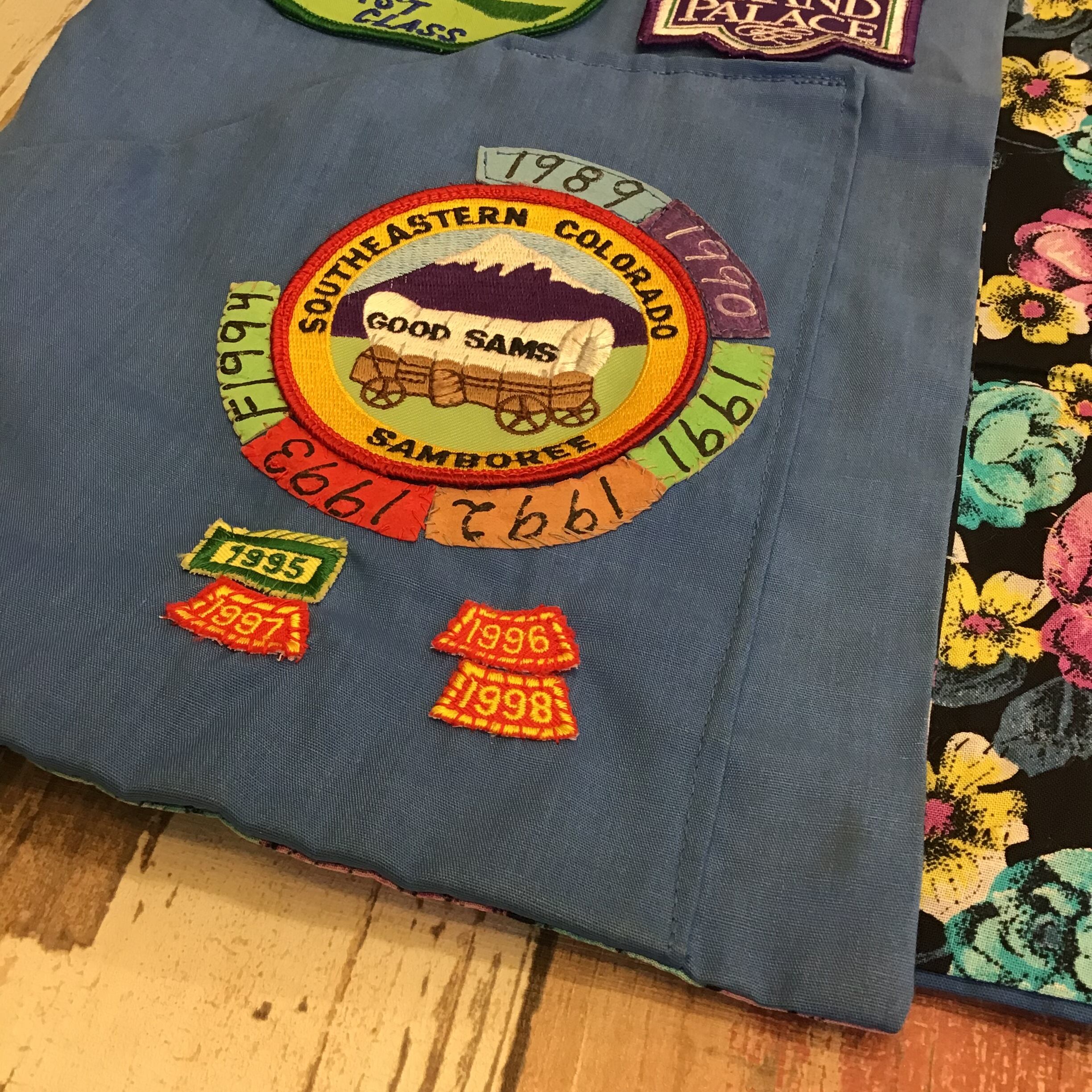 #レディース#古着#古着屋#インポート古着#インポート#ジョージアンドキューピー#ジョージ&キューピー#ヴィンテージ#vintage #トップス #ジャケットベスト #ベストジャケット #ワッペン付き #バッヂ #バッジ #バッチ #個性的 #花柄 #水色
