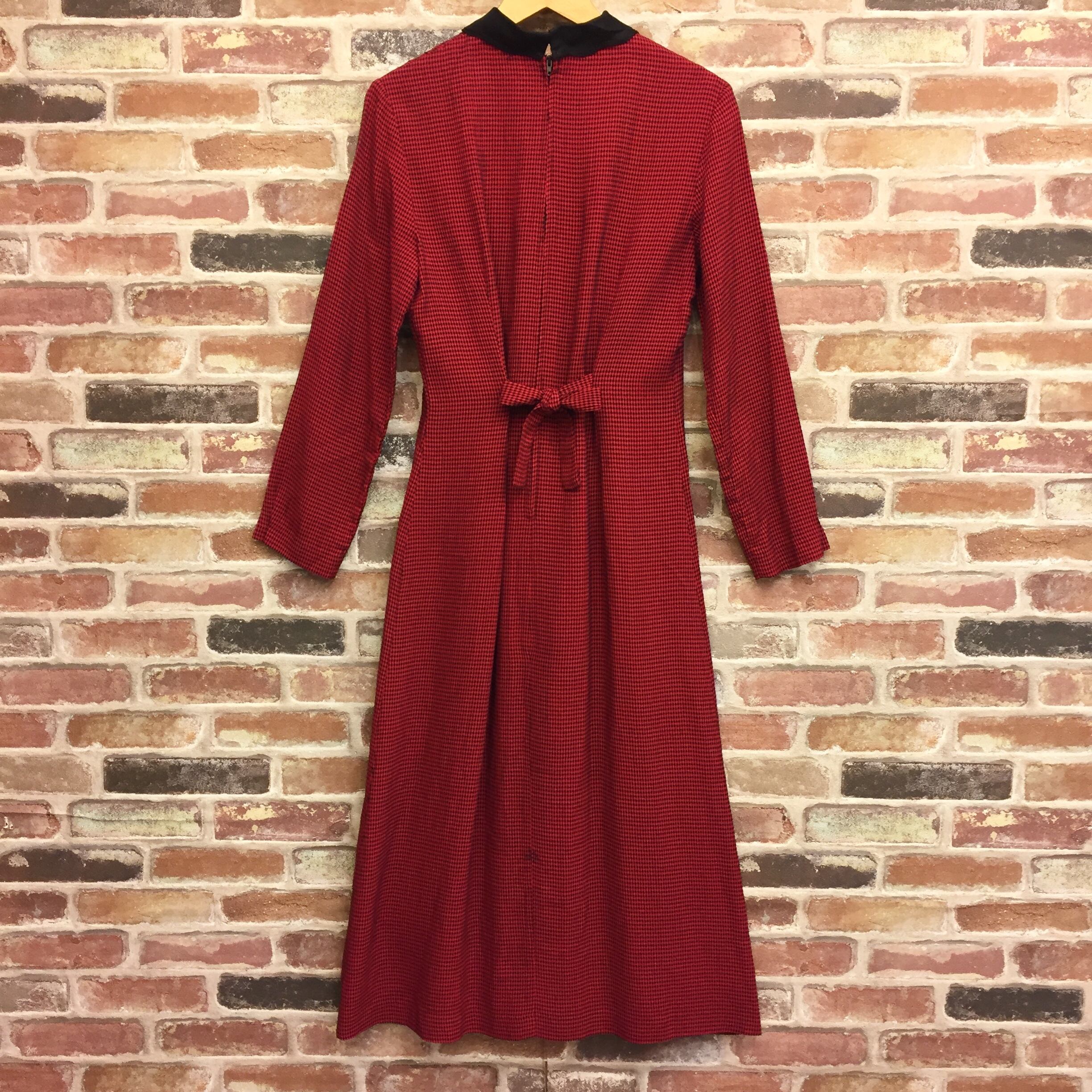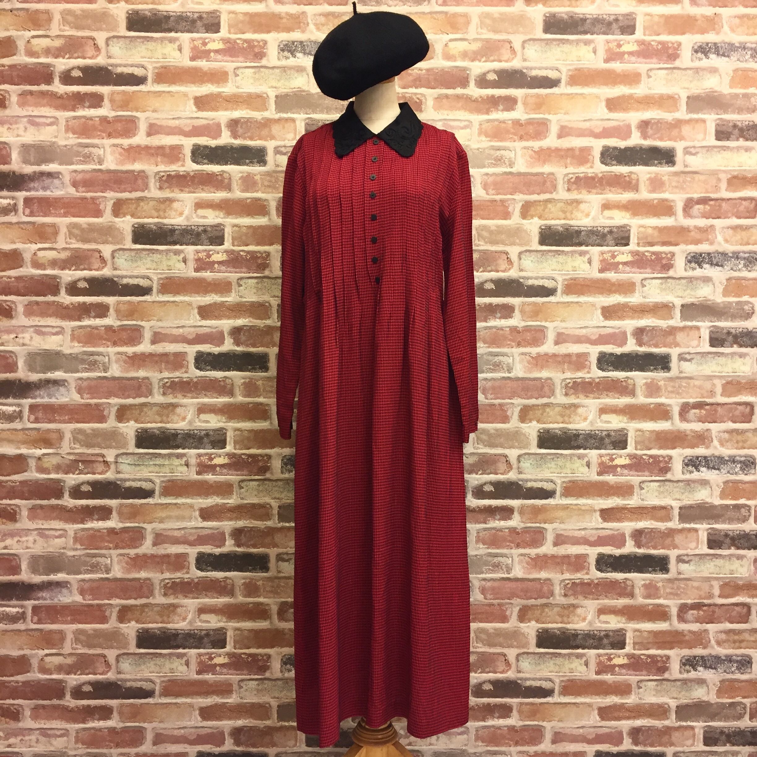 #レディース#古着#古着屋#インポート古着#インポート#ジョージアンドキューピー#ジョージ&キューピー #ヴィンテージ #vintage #古着ワンピ #チェック柄 #赤色 #黒色 #レース襟 #ゆったりワンピ #長袖ワンピース