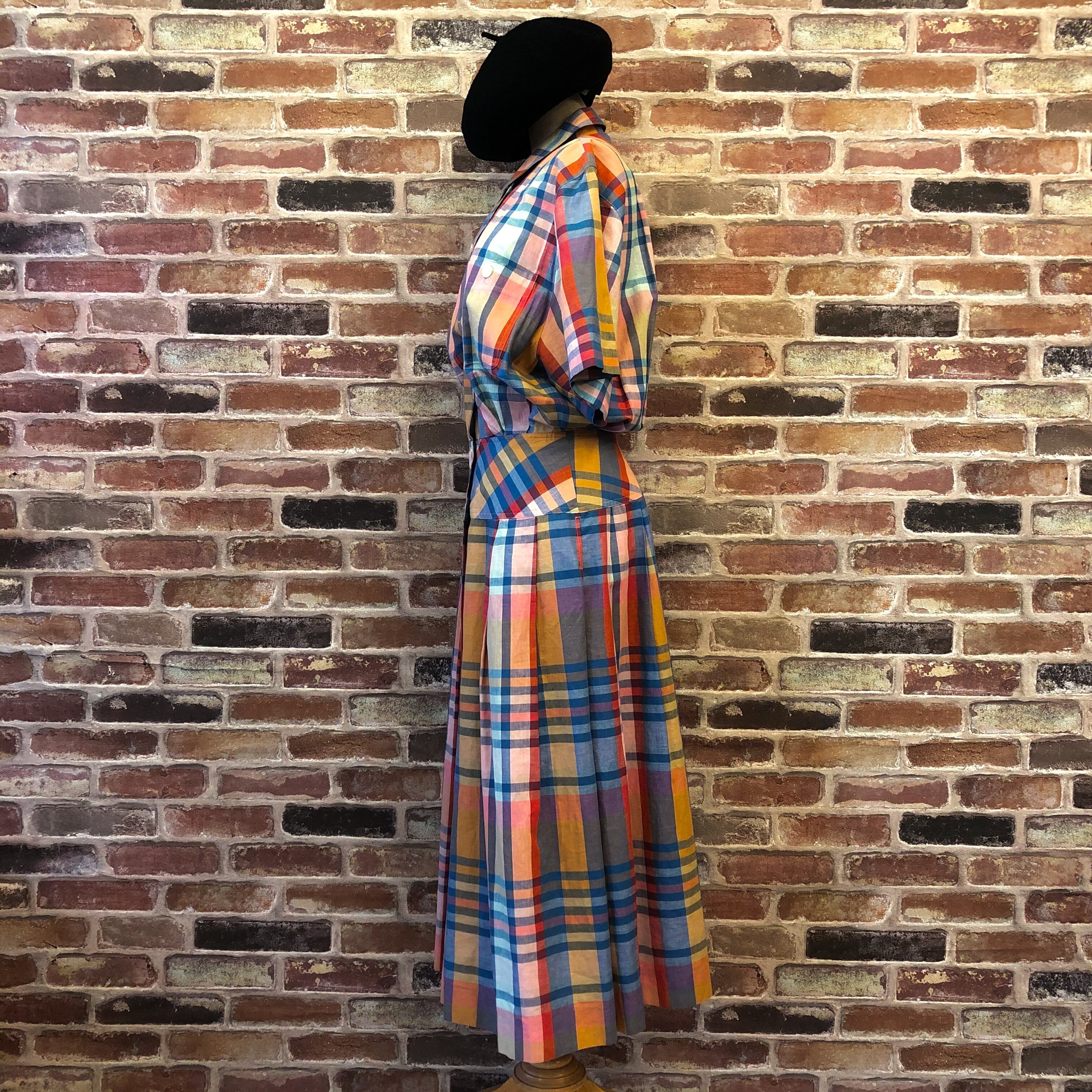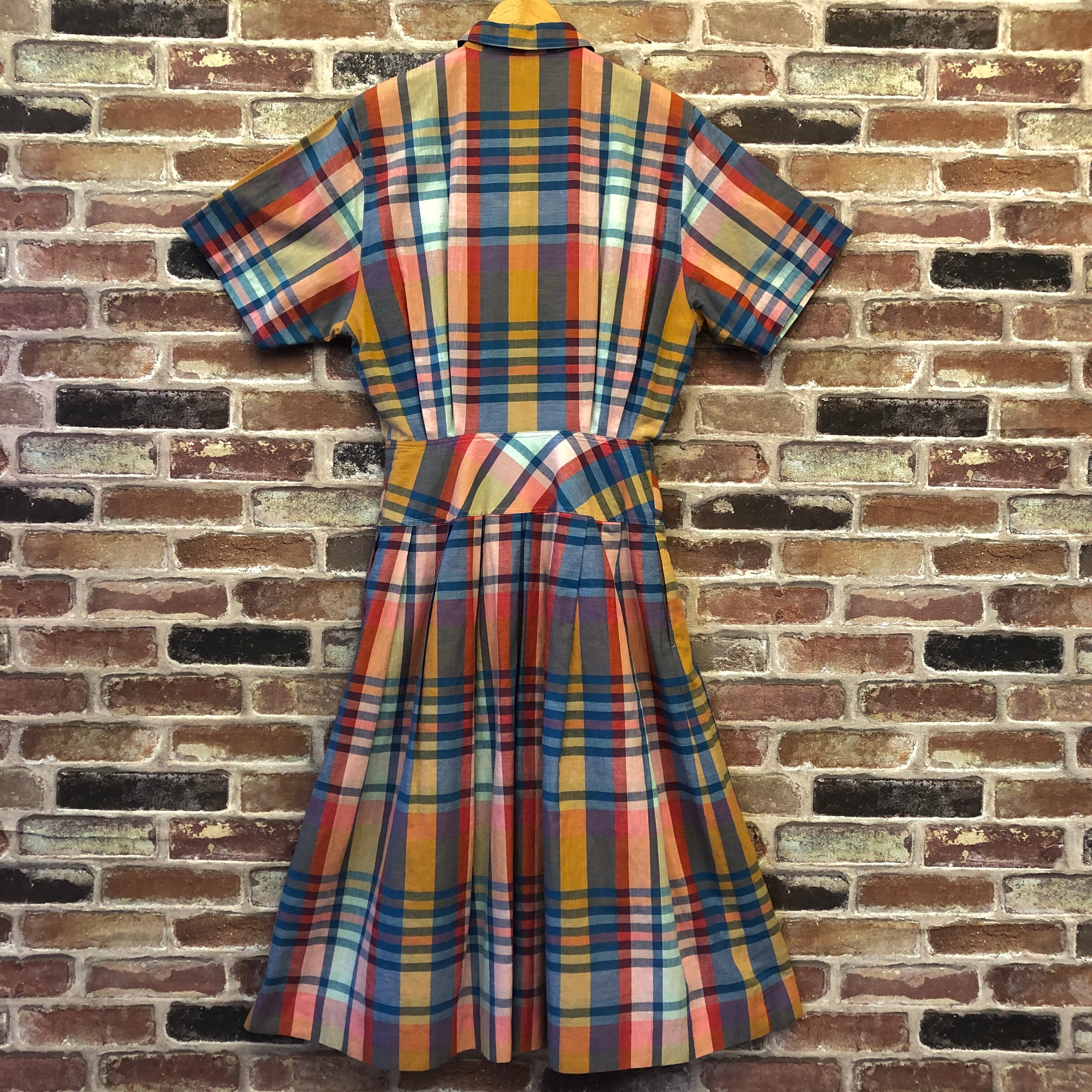 #レディース#古着#古着屋#インポート古着#インポート#ジョージアンドキューピー#ジョージ&キューピー #ヴィンテージ #vintage #古着ワンピ #国産古着 #開襟ワンピース #半袖ワンピース #チェック好き #ロング丈ワンピース