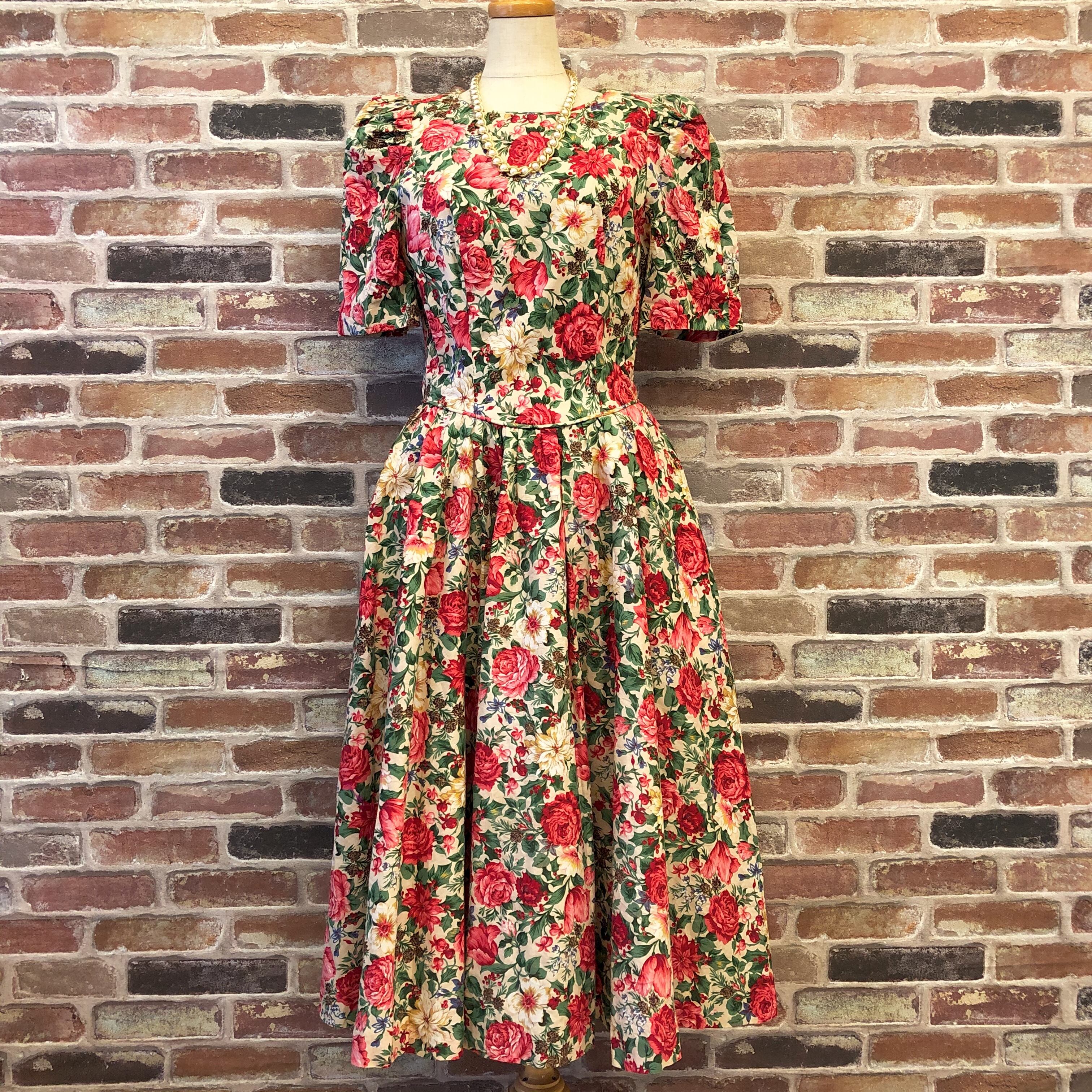 #レディース#古着#古着屋#インポート古着#インポート#ジョージアンドキューピー#ジョージ&キューピー #ヴィンテージ #vintage #古着ワンピ #半袖ワンピース #花柄ワンピースコーデ #おめかしワンピース #ハンドメイド #赤色 #パフスリーブワンピース