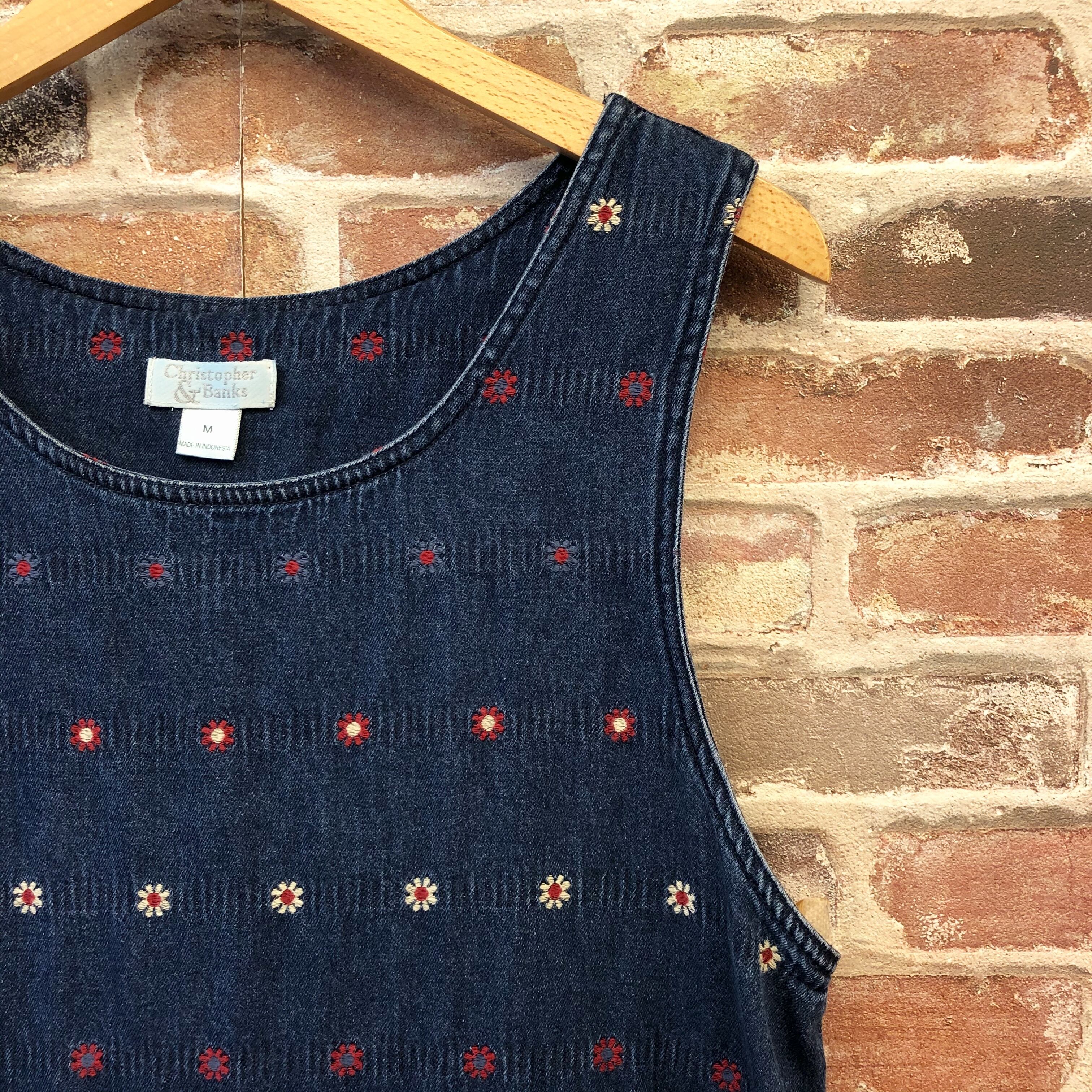 デニム生地にお花の刺繍がカジュアルで可愛い、ロングワンピースのご紹介です。