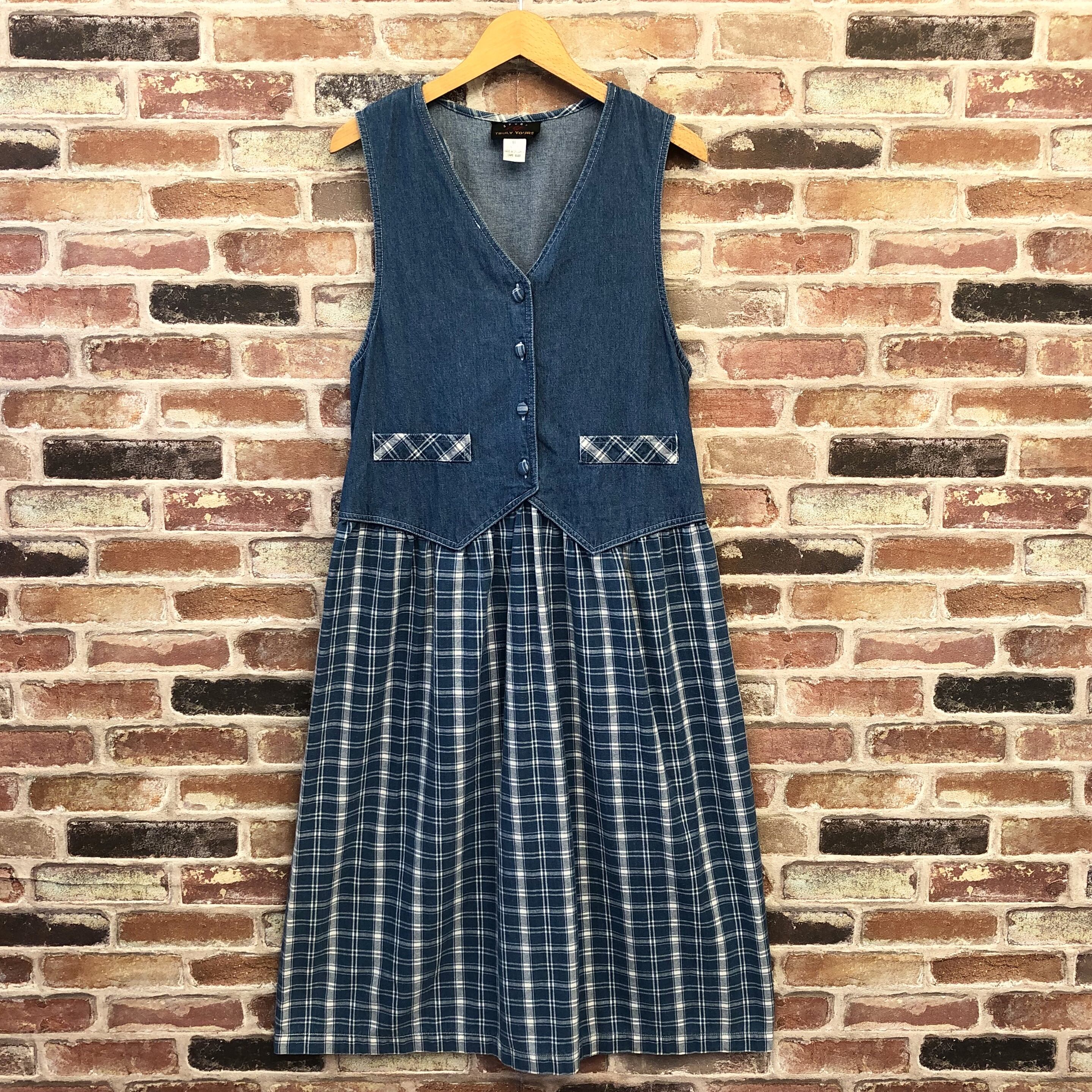 チェックとデニムの組み合わせが可愛い、ツートーンワンピースです。