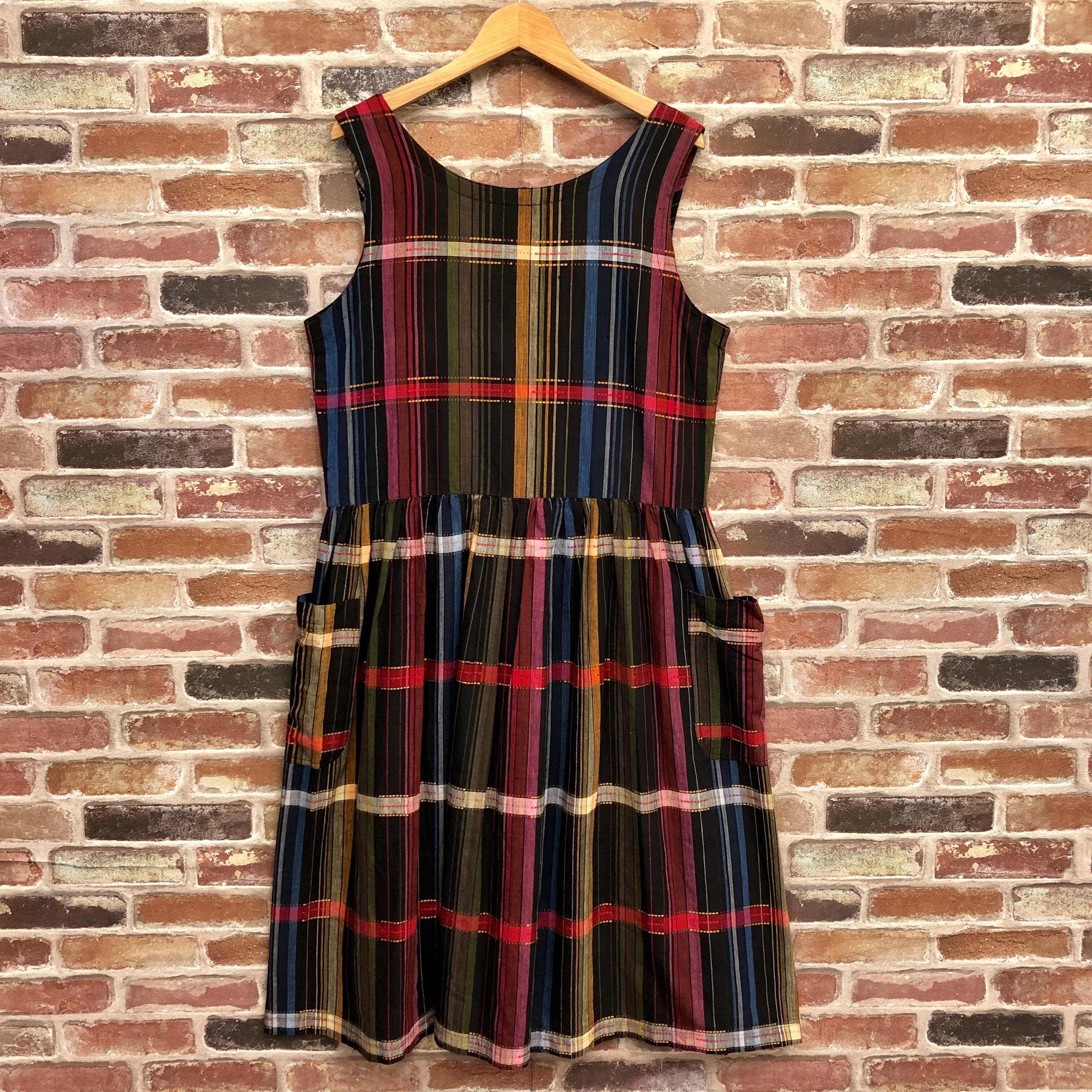 #レディース#古着#古着屋#インポート古着#インポート#ジョージアンドキューピー#ジョージ&キューピー #ヴィンテージ #vintage #古着ワンピ #ノースリーブワンピース #ストライプ柄 #黒色 #赤色 #黄色 #青色 #ゆったり #前開き #マルチカラー