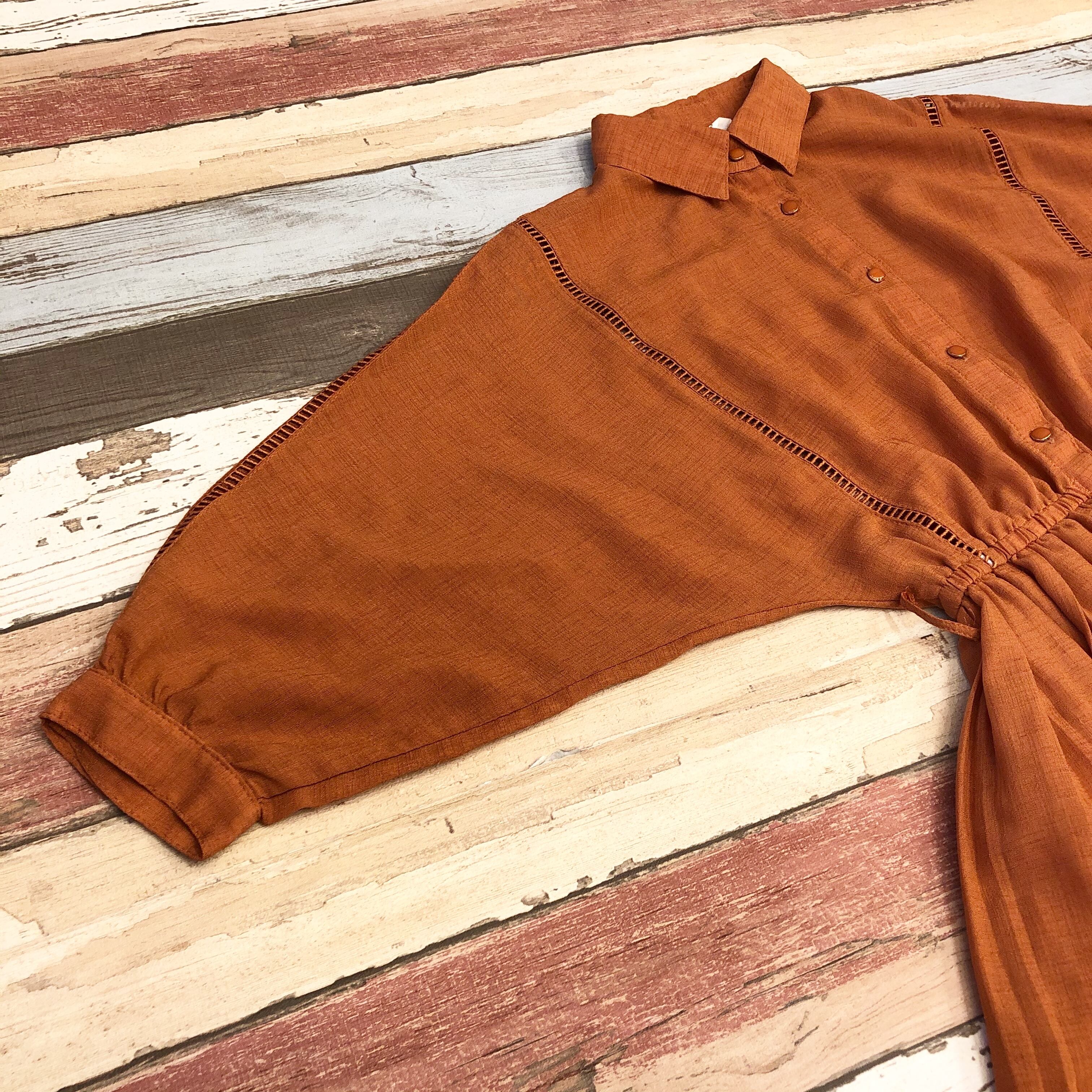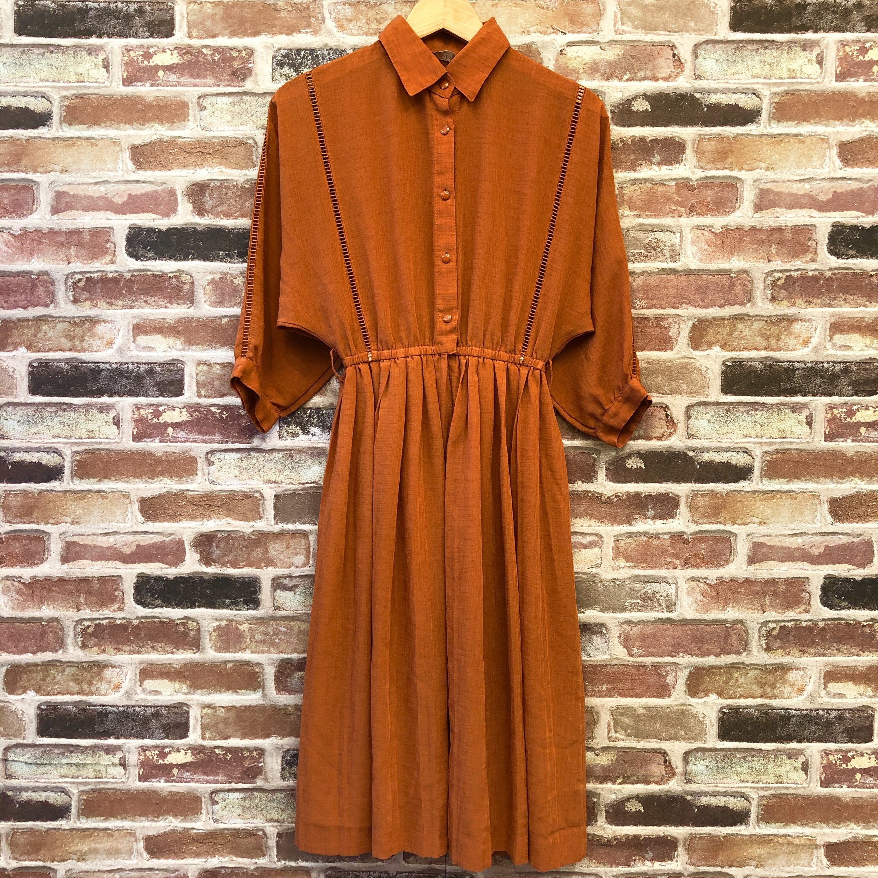 #レディース#古着#古着屋#インポート古着#インポート#ジョージアンドキューピー#ジョージ&キューピー #ヴィンテージ #vintage #古着ワンピ #半袖ワンピース #ドルマンスリーブ #橙色 #シンプルワンピ #襟付き