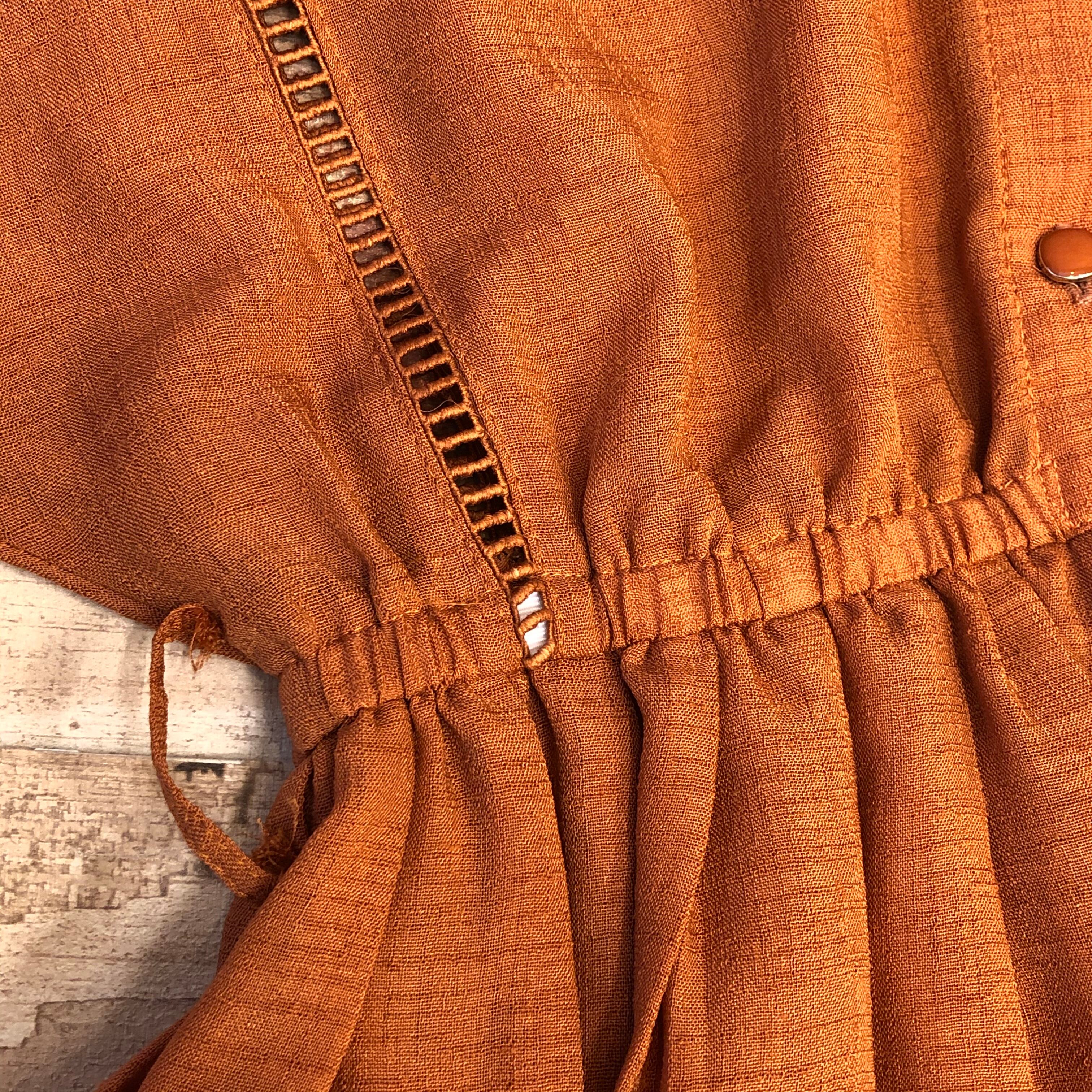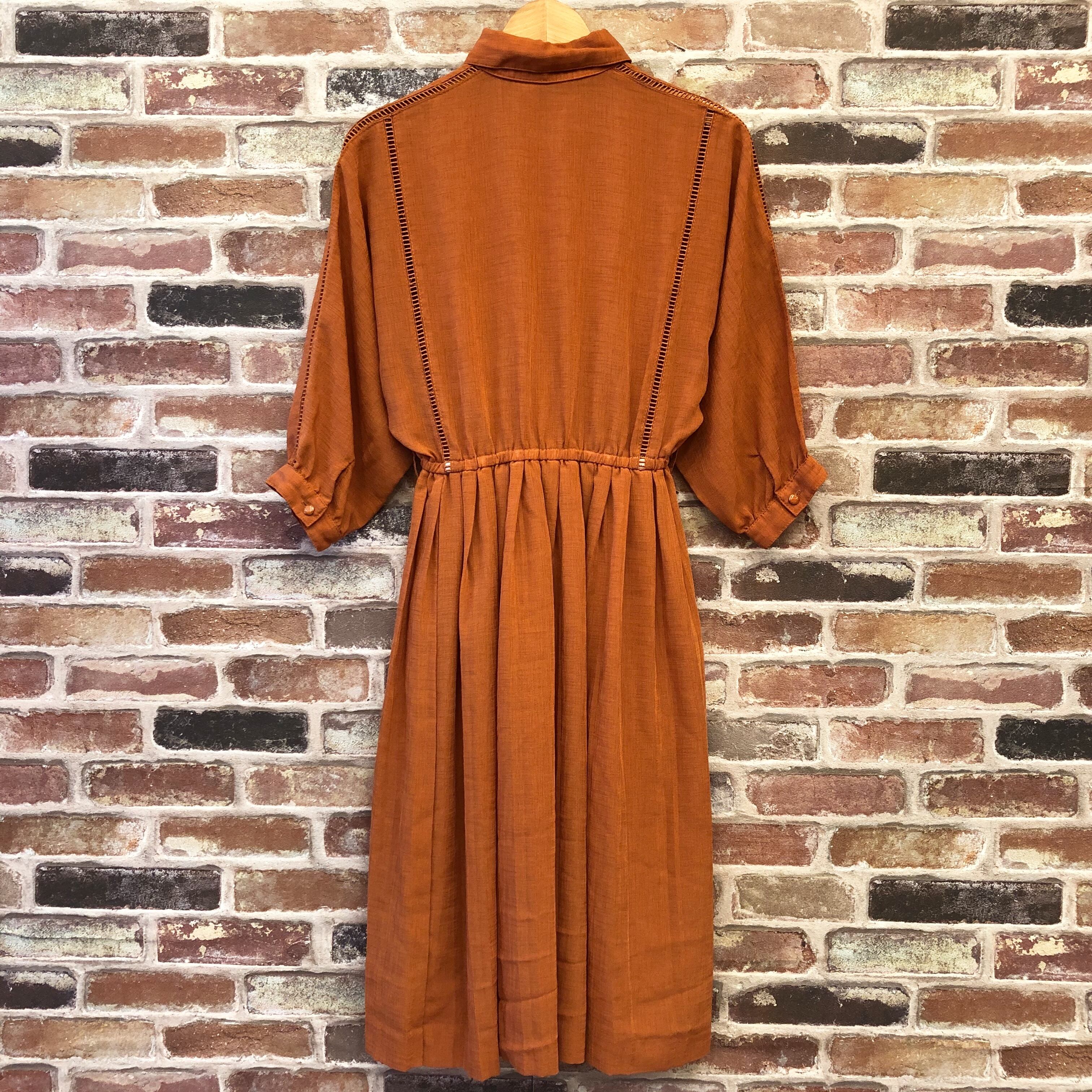 少し渋みのあるオレンジ色の、シンプルなワンピースです。