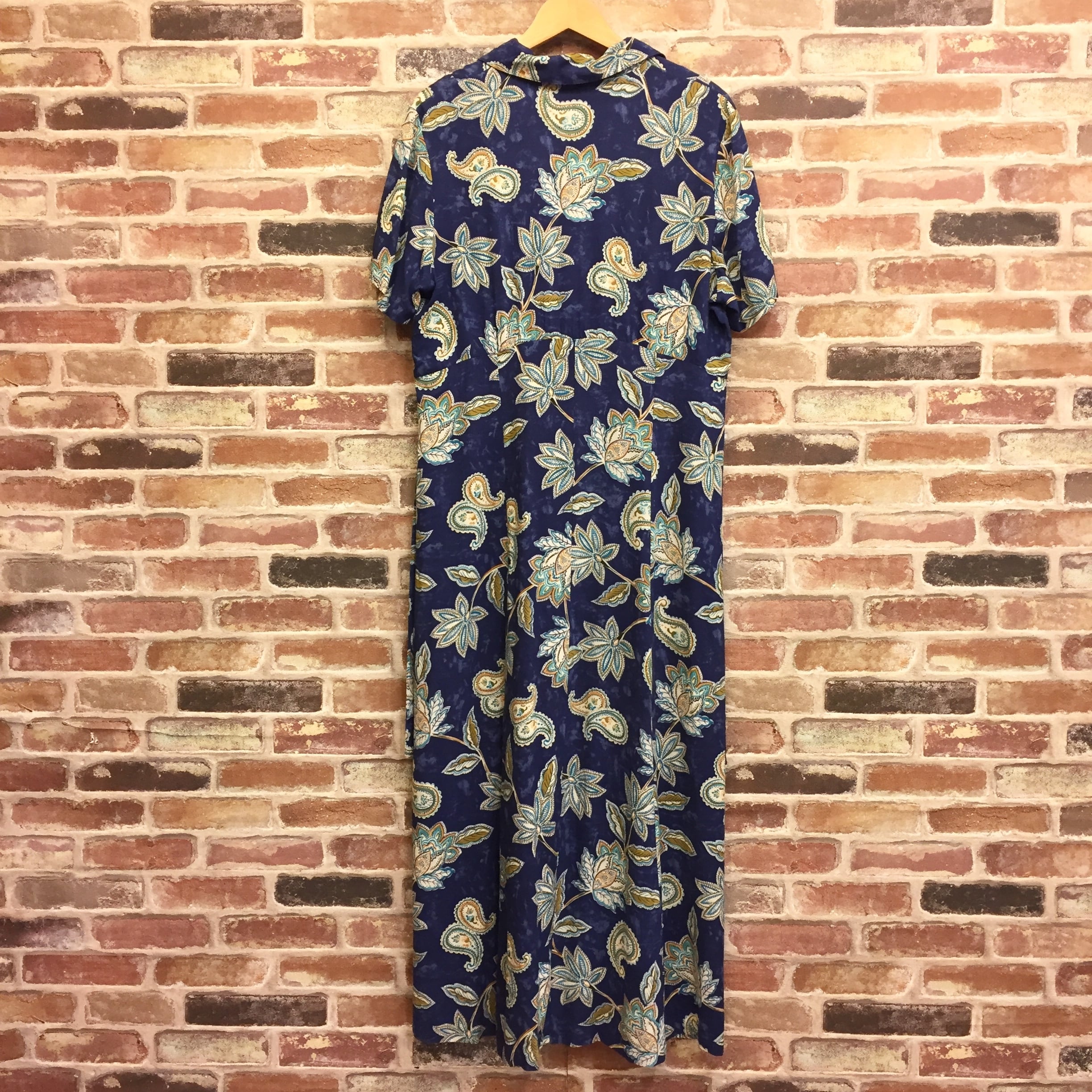 #レディース#古着#古着屋#インポート古着#インポート#ジョージアンドキューピー#ジョージ&キューピー #ヴィンテージ #vintage #古着ワンピ #半袖ワンピース #ロング丈 #マキシ丈 #紺色 #総柄ワンピース #前開き #開襟