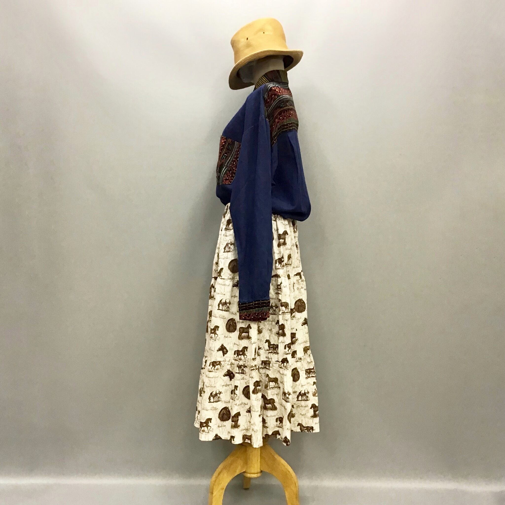 #レディース#古着#古着屋#インポート古着#インポート#ジョージアンドキューピー#ジョージ&キューピー#ヴィンテージ#vintage #ミドル丈 #ひざ丈 #馬柄 #総柄 #ギャザースカート #白色