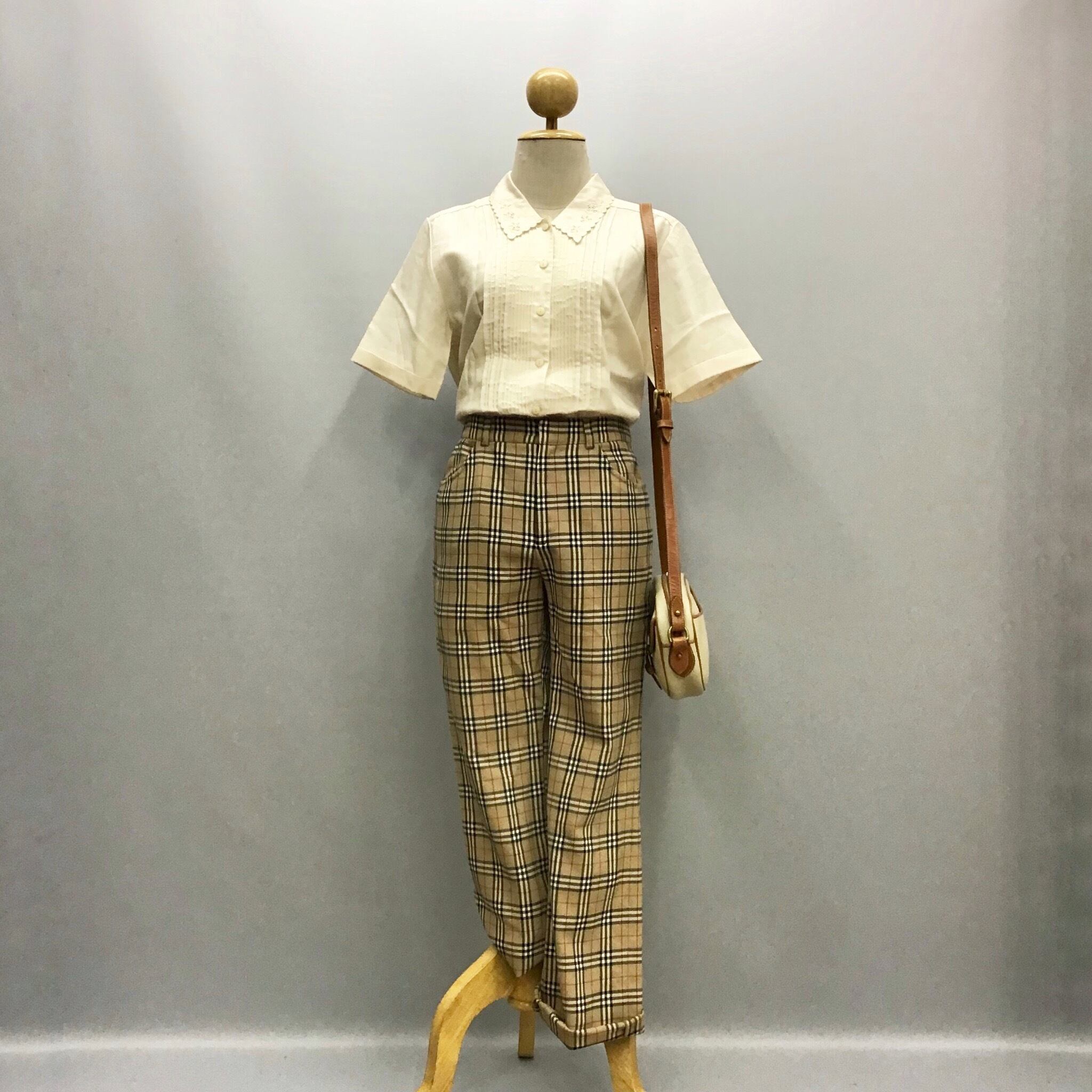 #レディース#古着#古着屋#インポート古着#インポート#ジョージアンドキューピー#ジョージ&キューピー#ヴィンテージ#vintage #トップス #半袖シャツ #刺繍入り #スカラップ #デザインシャツ #レトロブラウス #ベージュ #アイボリー