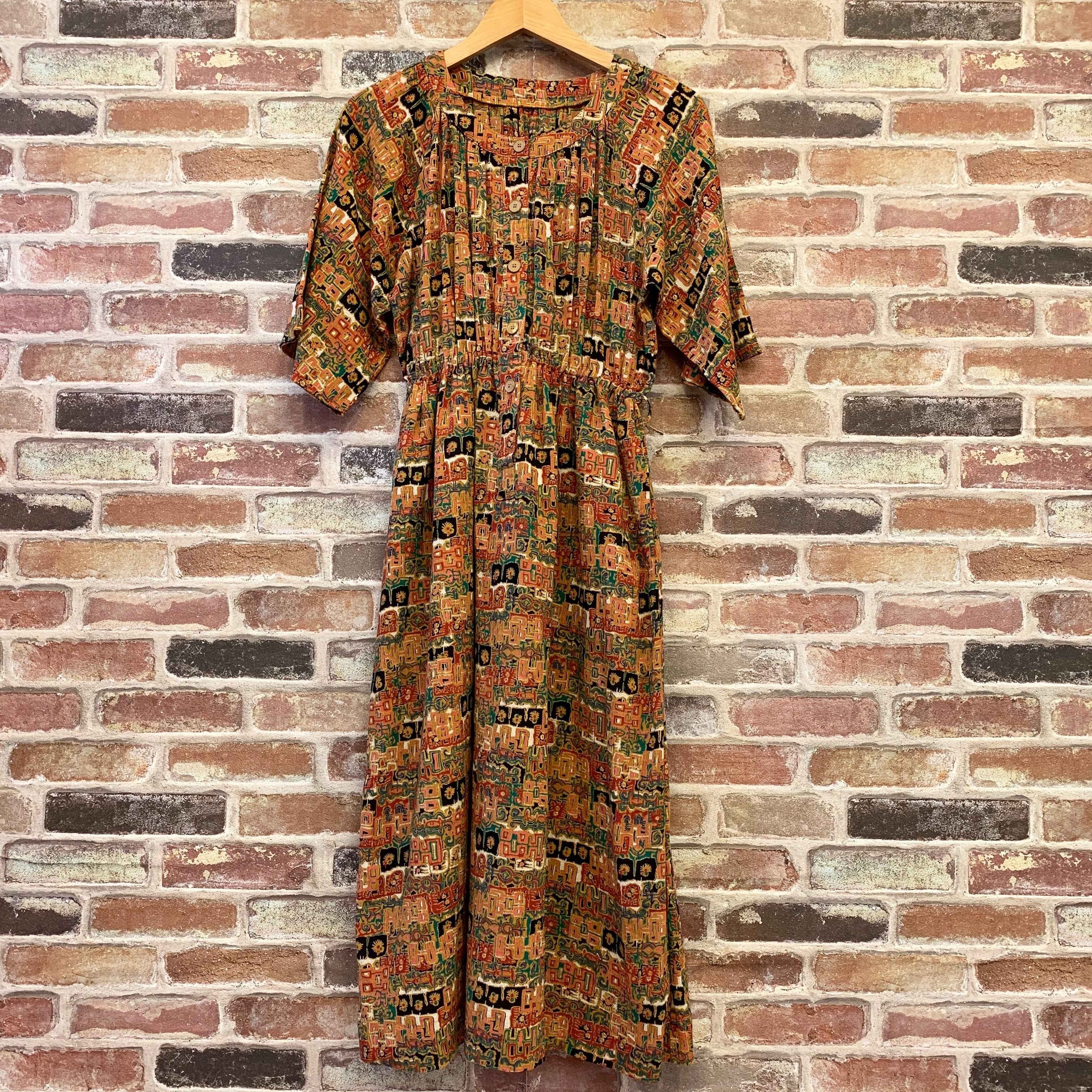 #レディース#古着#古着屋#インポート古着#インポート#ジョージアンドキューピー#ジョージ&キューピー #ヴィンテージ #vintage #古着ワンピ #半袖ワンピース #ウエストゴム #総柄ワンピース #ラグラン袖