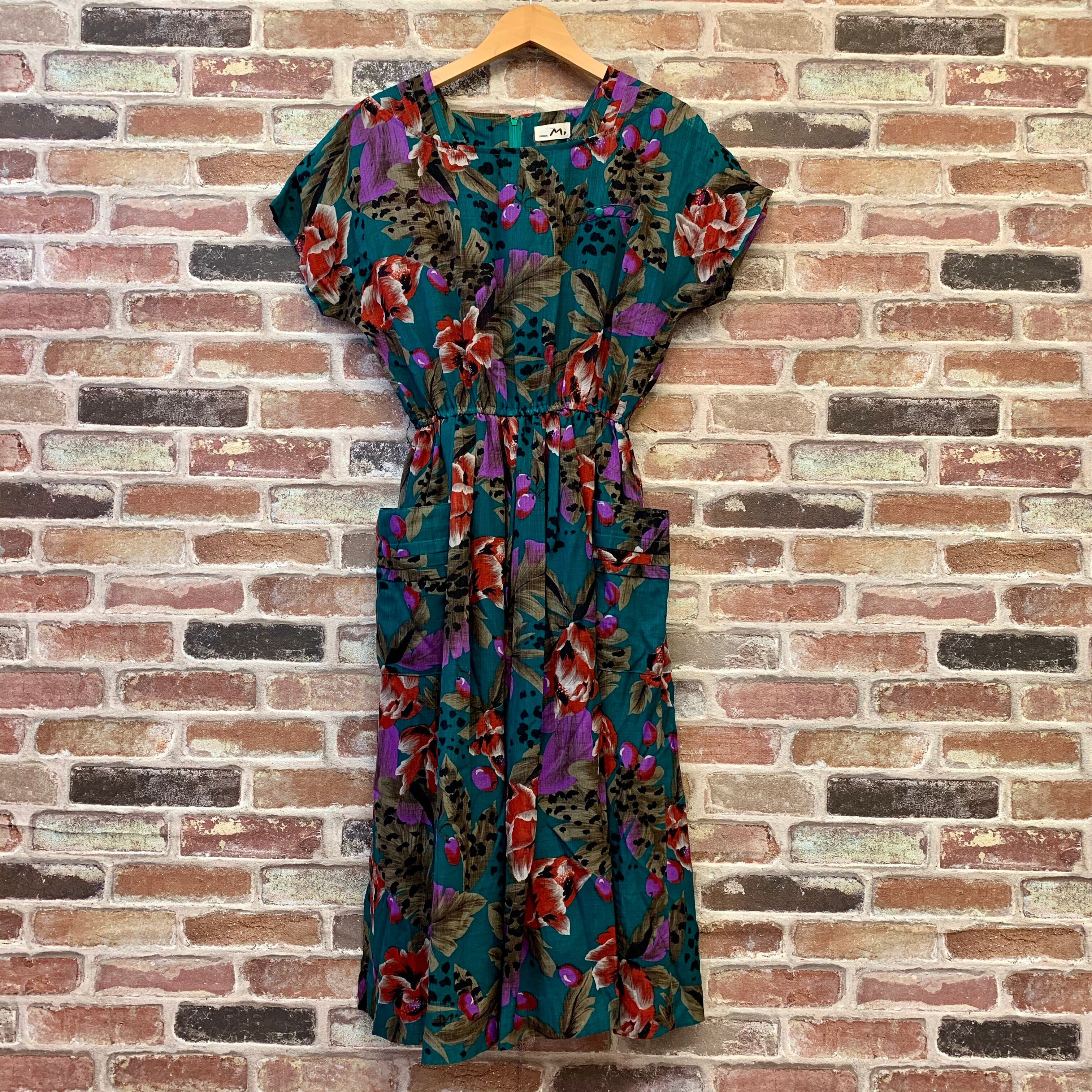 #レディース#古着#古着屋#インポート古着#インポート#ジョージアンドキューピー#ジョージ&キューピー #ヴィンテージ #vintage #古着ワンピ #緑色 #総柄 #派手 #ドルマンスリーブワンピース #柄物が好き