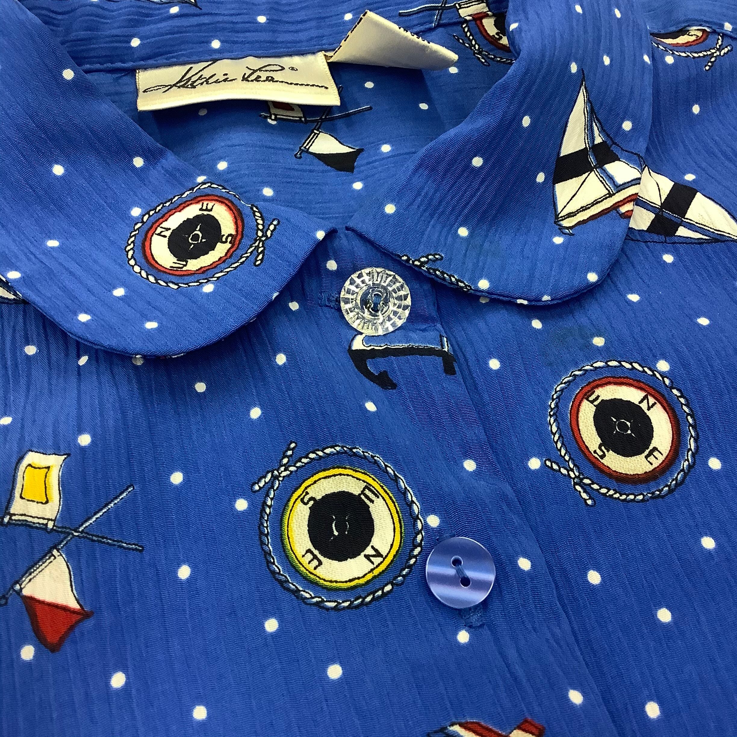 #レディース#古着#古着屋#インポート古着#インポート#ジョージアンドキューピー#ジョージ&キューピー#ヴィンテージ#vintage #トップス #半袖シャツ #総柄 #パターンシャツ #ヨット柄 #海 #青色 #襟付き #前開き