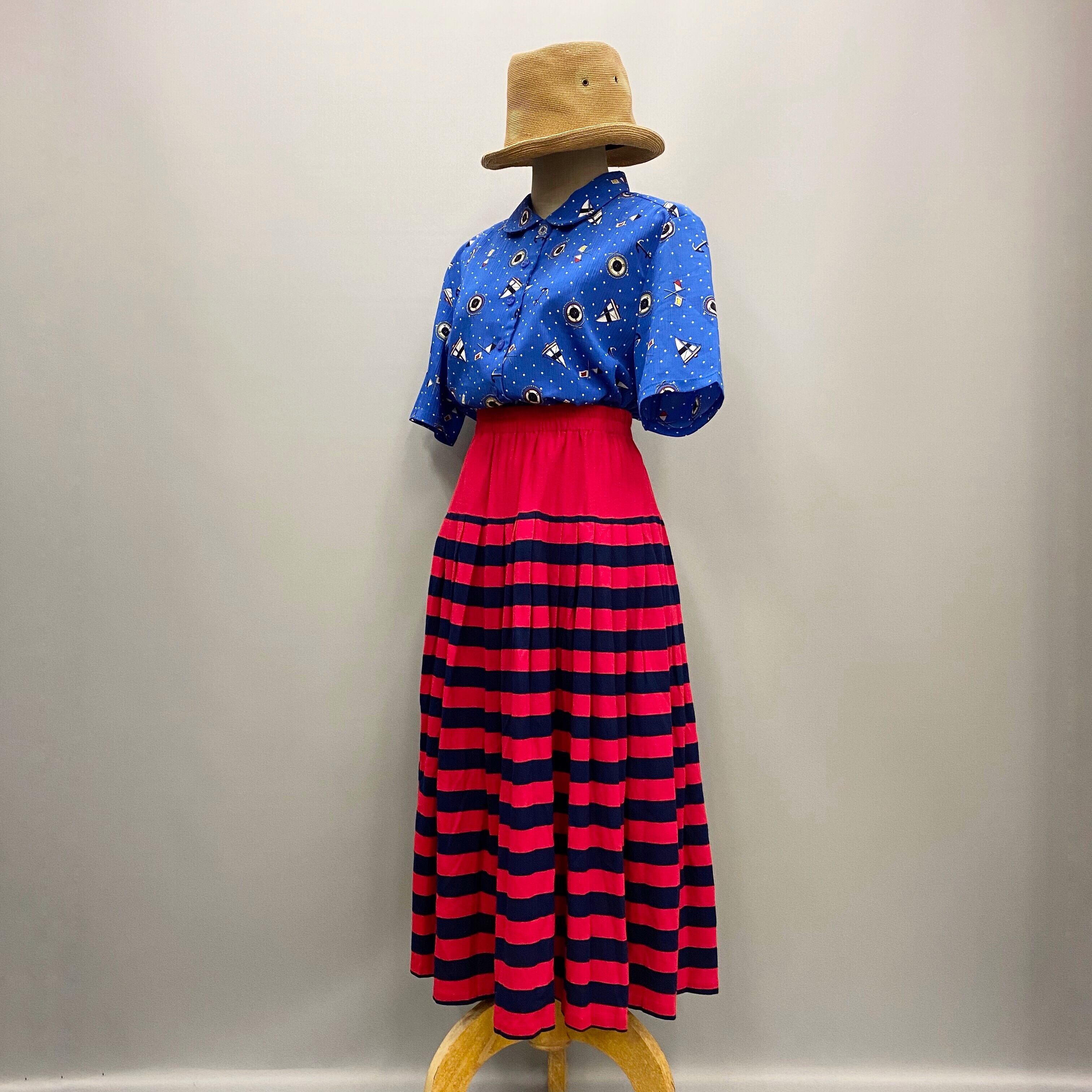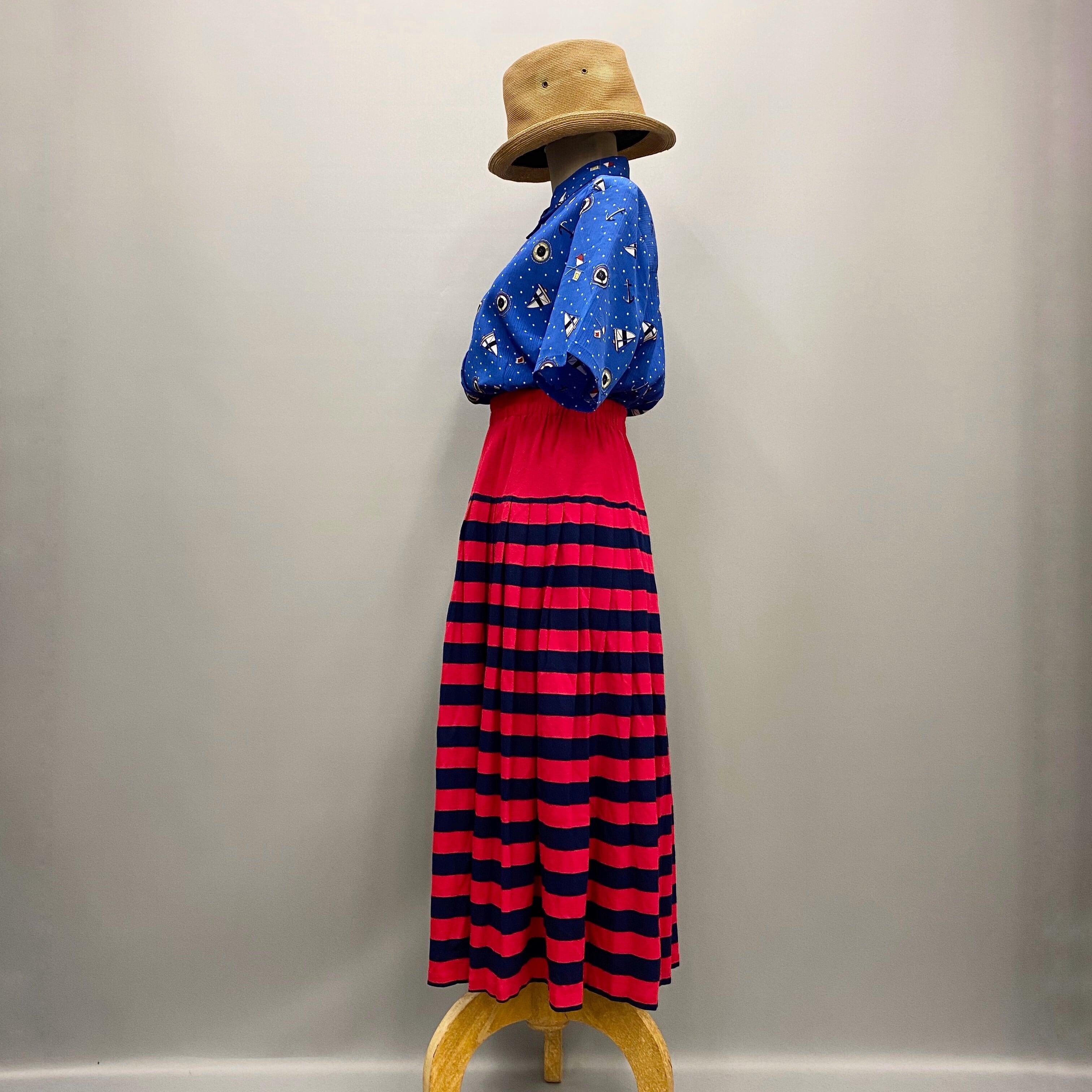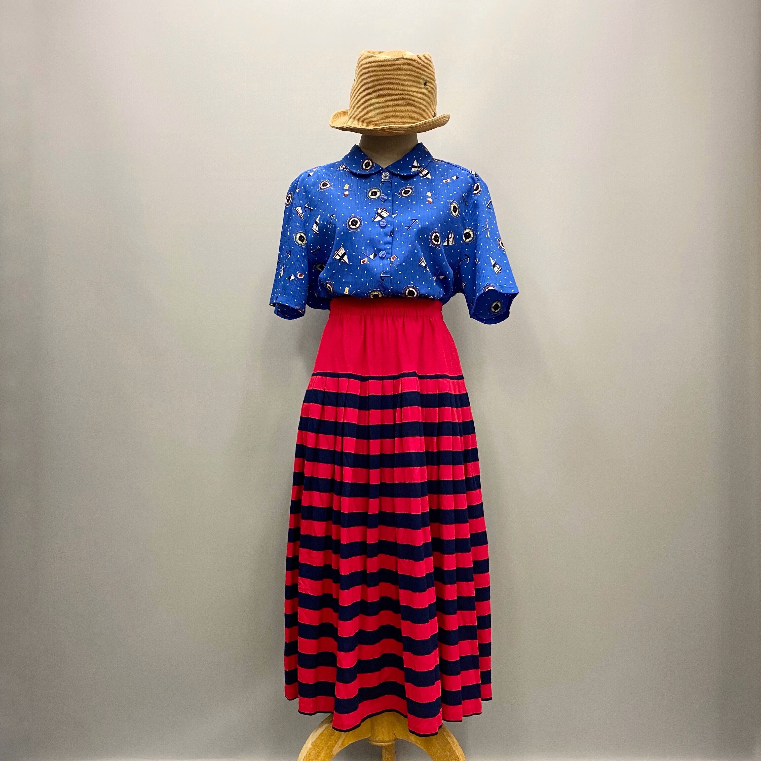 ヨットや浮き輪の絵が描かれたレトロブラウスです。