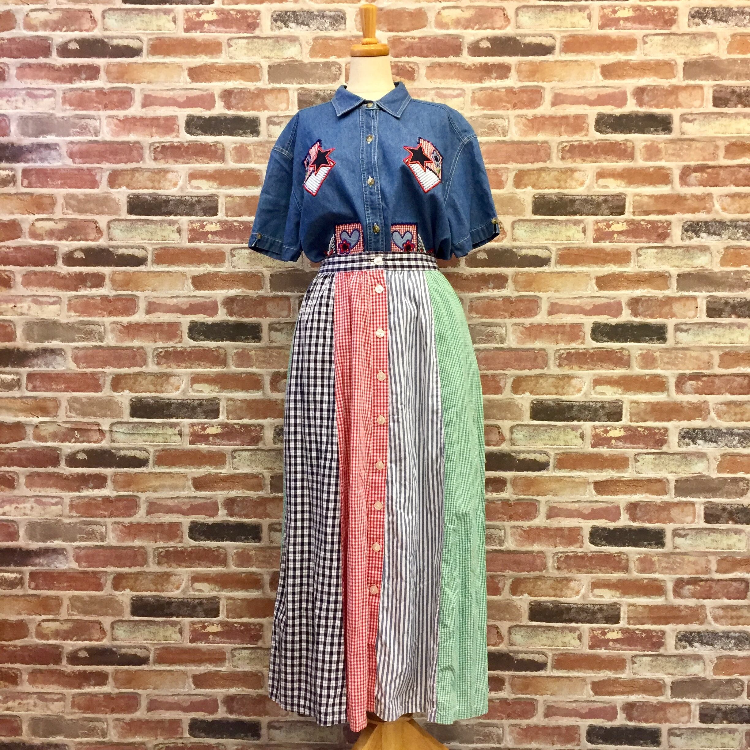 #レディース#古着#古着屋#インポート古着#インポート#ジョージアンドキューピー#ジョージ&キューピー #ヴィンテージ #vintage #ロング丈 #カラフル #切り替えスカート #ウエストゴム #チェック柄