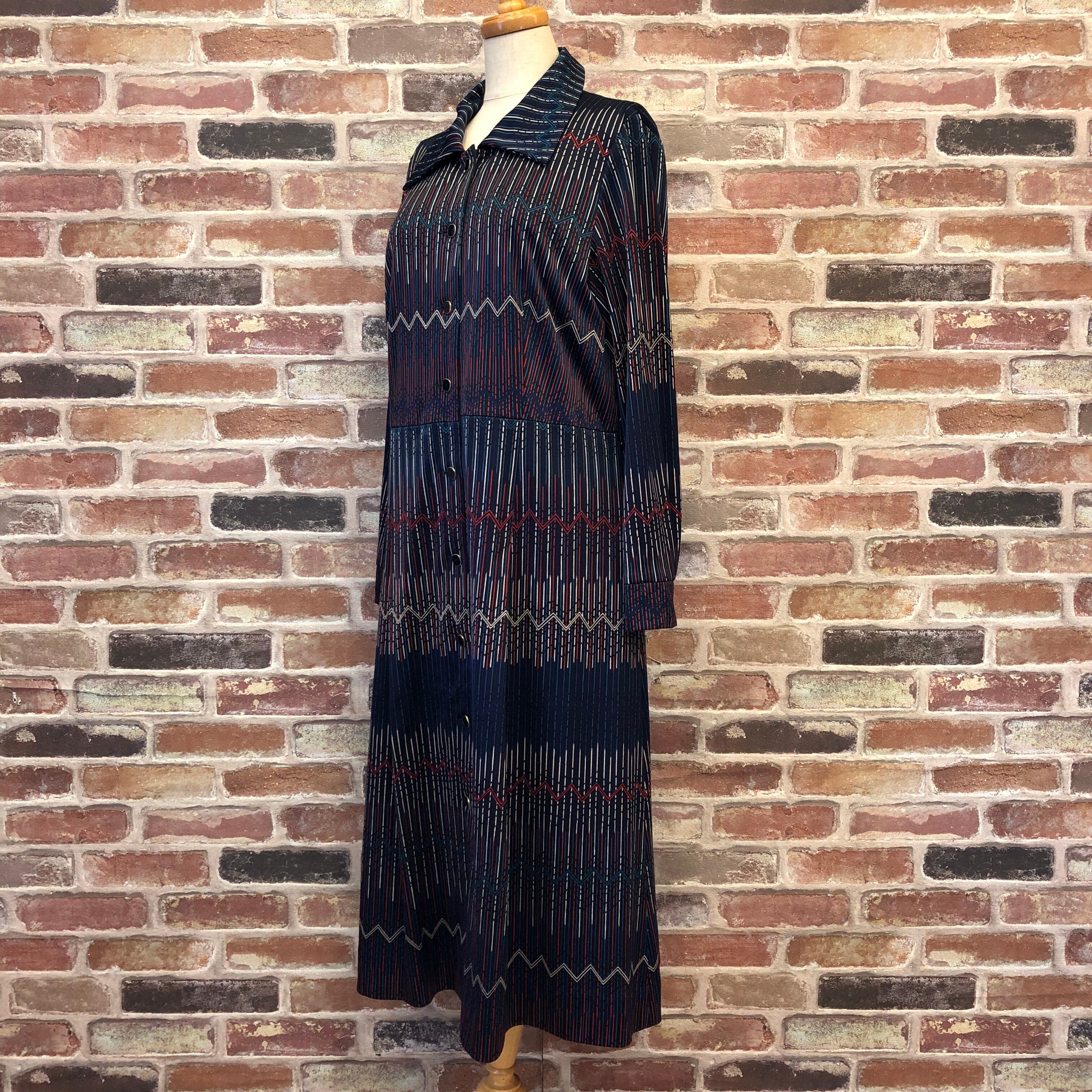 個性的な幾何学模様が目を惹くレトロなワンピースです♪