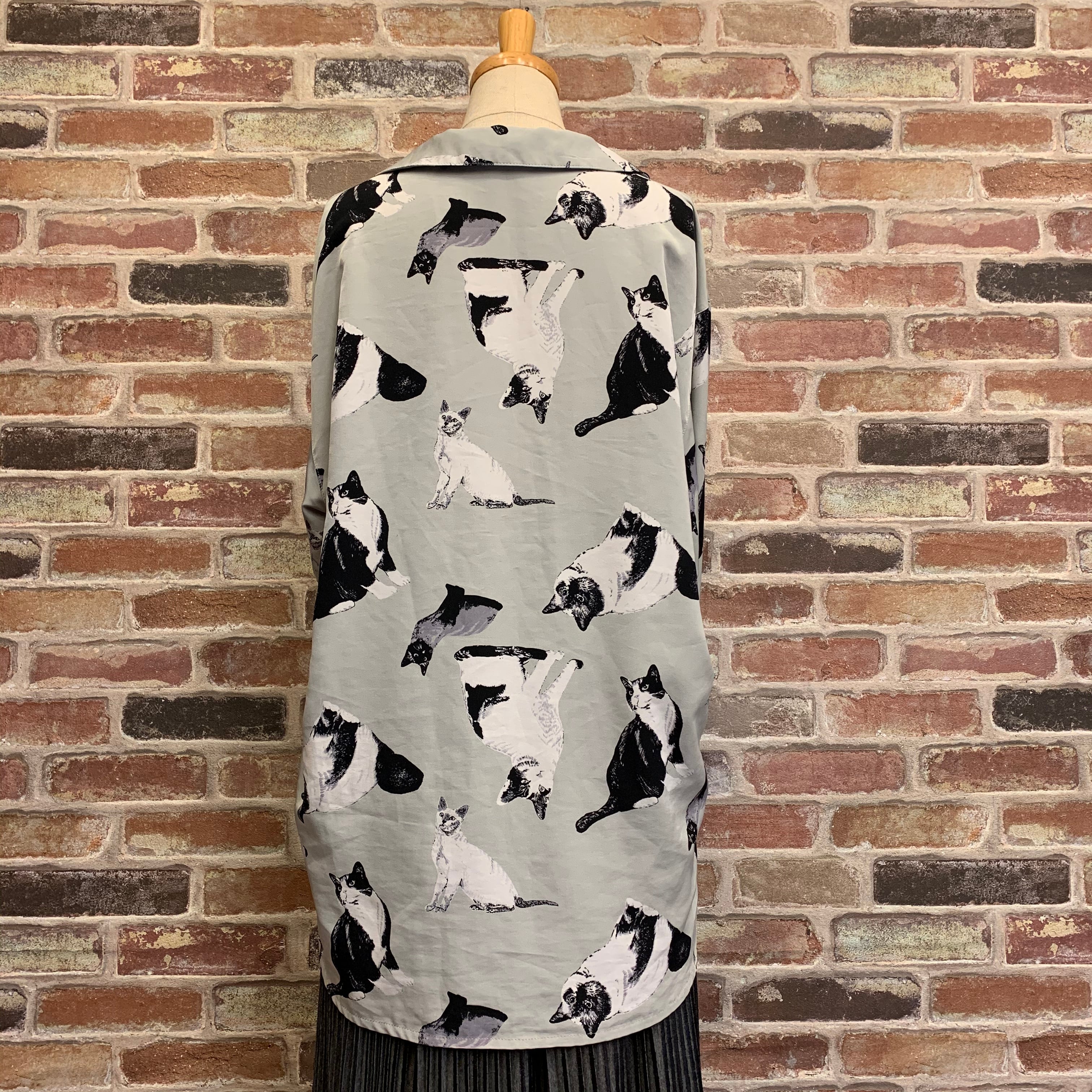 #レディース#古着#古着屋#インポート古着#インポート#ジョージアンドキューピー#ジョージ&キューピー #ヴィンテージ #vintage #古着シャツ #柄シャツ #猫 #動物柄 #長袖 #灰色