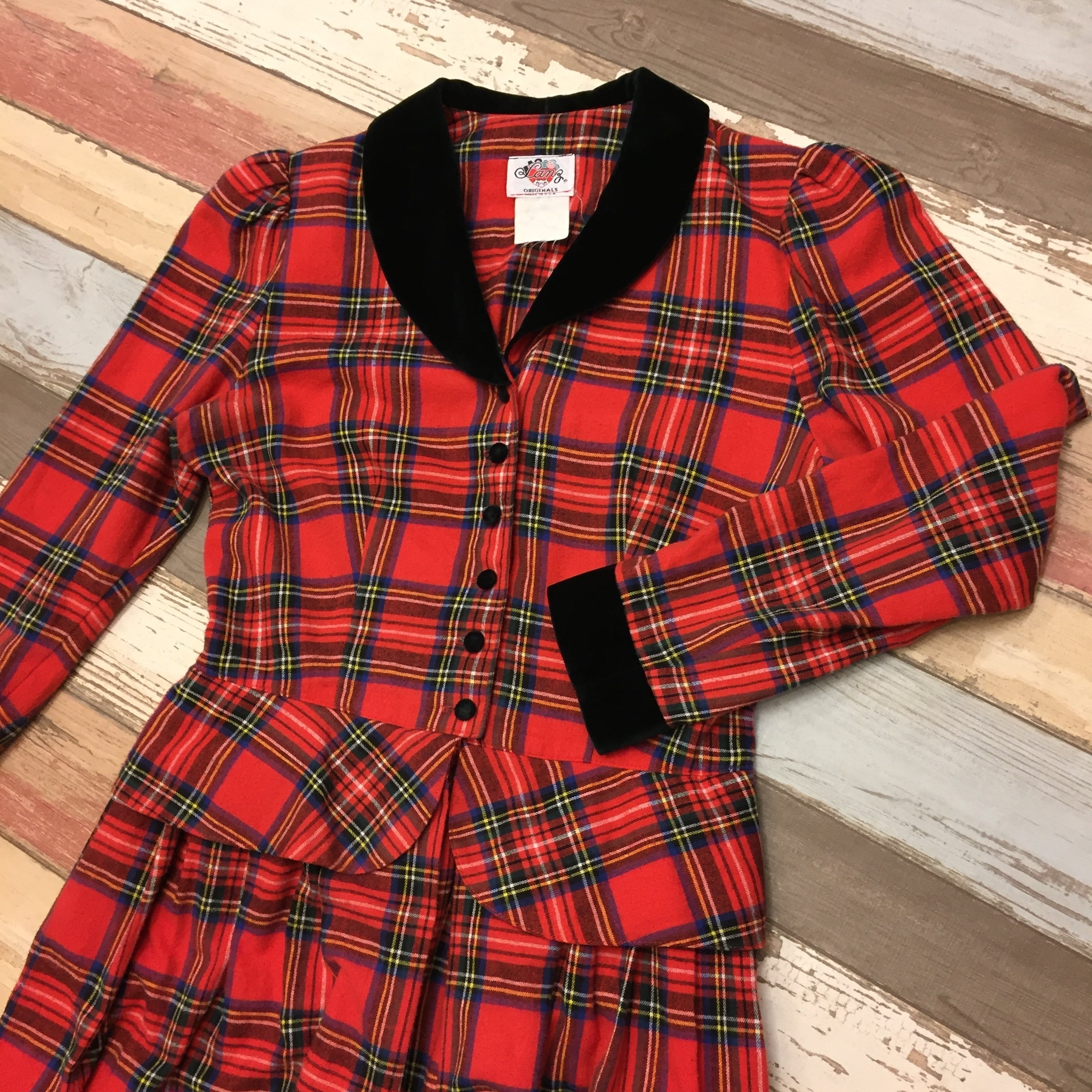 #レディース#古着#古着屋#インポート古着#インポート#ジョージアンドキューピー#ジョージ&キューピー #ヴィンテージ #vintage #古着ワンピ #チェック柄 #赤色 #ツーピース風 #アメリカ製