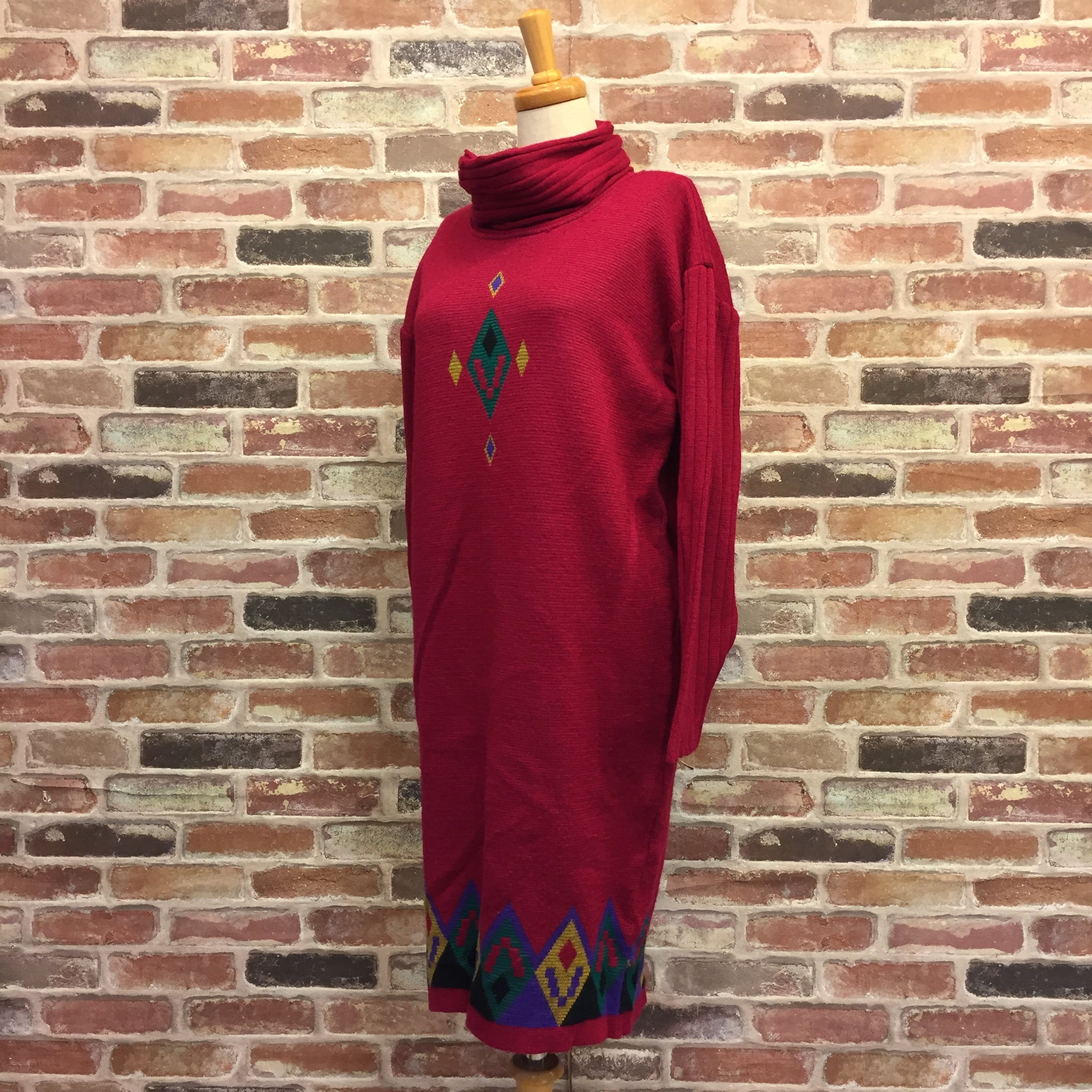 #レディース#古着#古着屋#インポート古着#インポート#ジョージアンドキューピー#ジョージ&キューピー #ヴィンテージ #vintage #ニットワンピ #冬ワンピ #赤色 #無地 #タートルネック